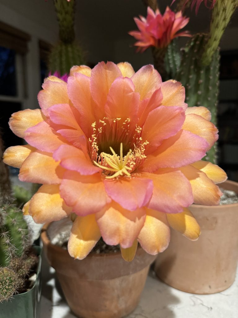 Echinopsis/Tricho cactus are well known for their big beautiful flowers at maturity. These plants will usually get to that place at 4-8 feet and specific growing conditions. Highly collectible for their looks, shape, and color, they make wonderful potted plants and landscaping plants.