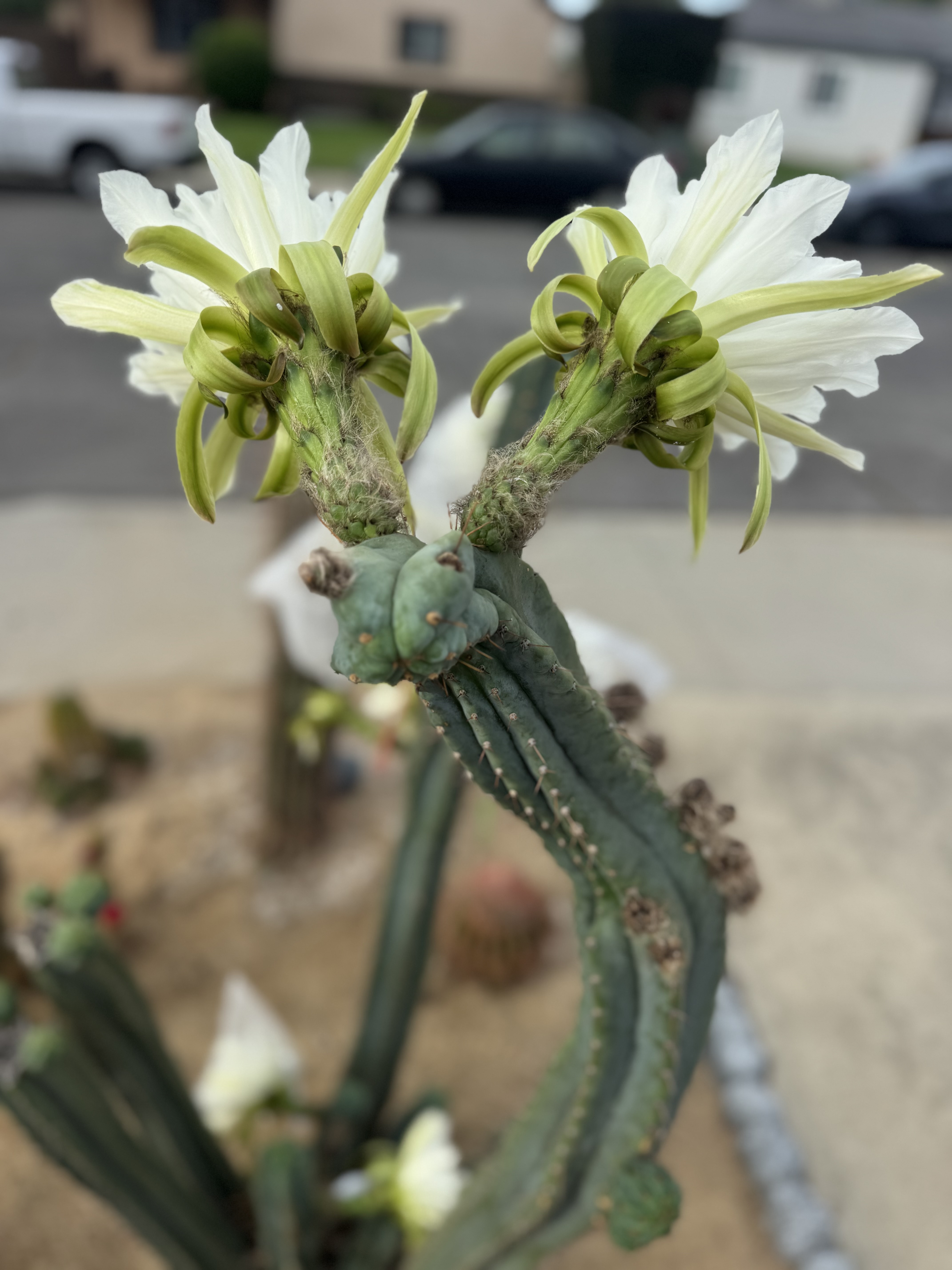 T. bridgesii sometimes called Echinopsis lageniformis. Long spined slender blue columns make up these Bolivian plants. We love T. bridgesii especially for the dangerously long spines. There’s just something about looking at stand of yellow needles coming out of these notchy blue columns. The different profiles change their shape also. After growing many of these for six years, my goal of obtaining flowers has still been at the top of the list. Their growth seems to initiate offsetting fairly early so thats why so many stands are so wide and have so any tips growing from every which way. Something well known of bridgesii is their rib shifting and then sometimes spineless appearance. The rare melted wax forms are some of everyones favorites and gives another reason why we collect them.