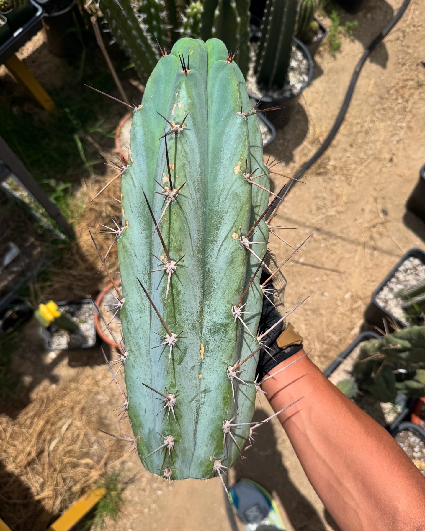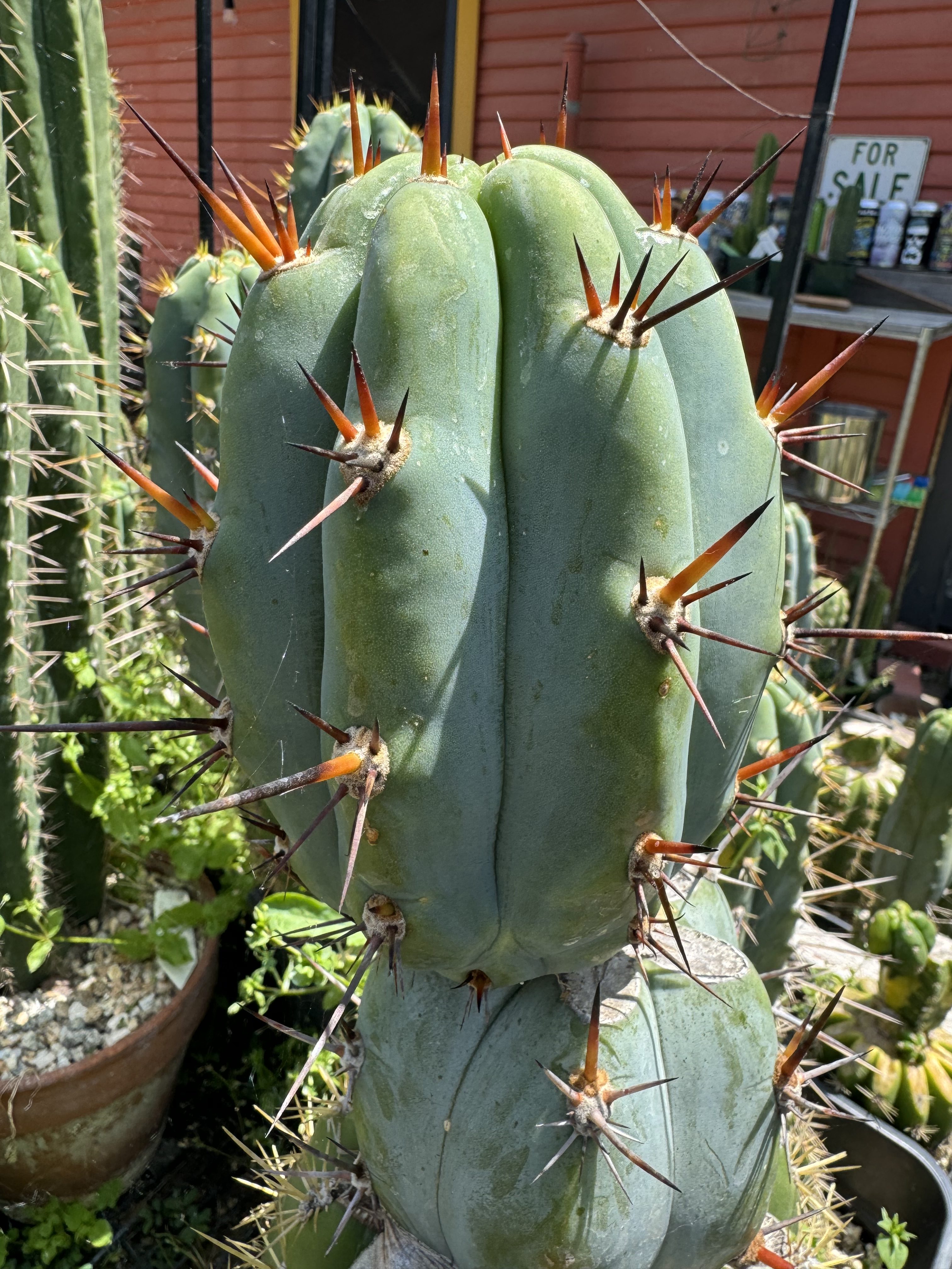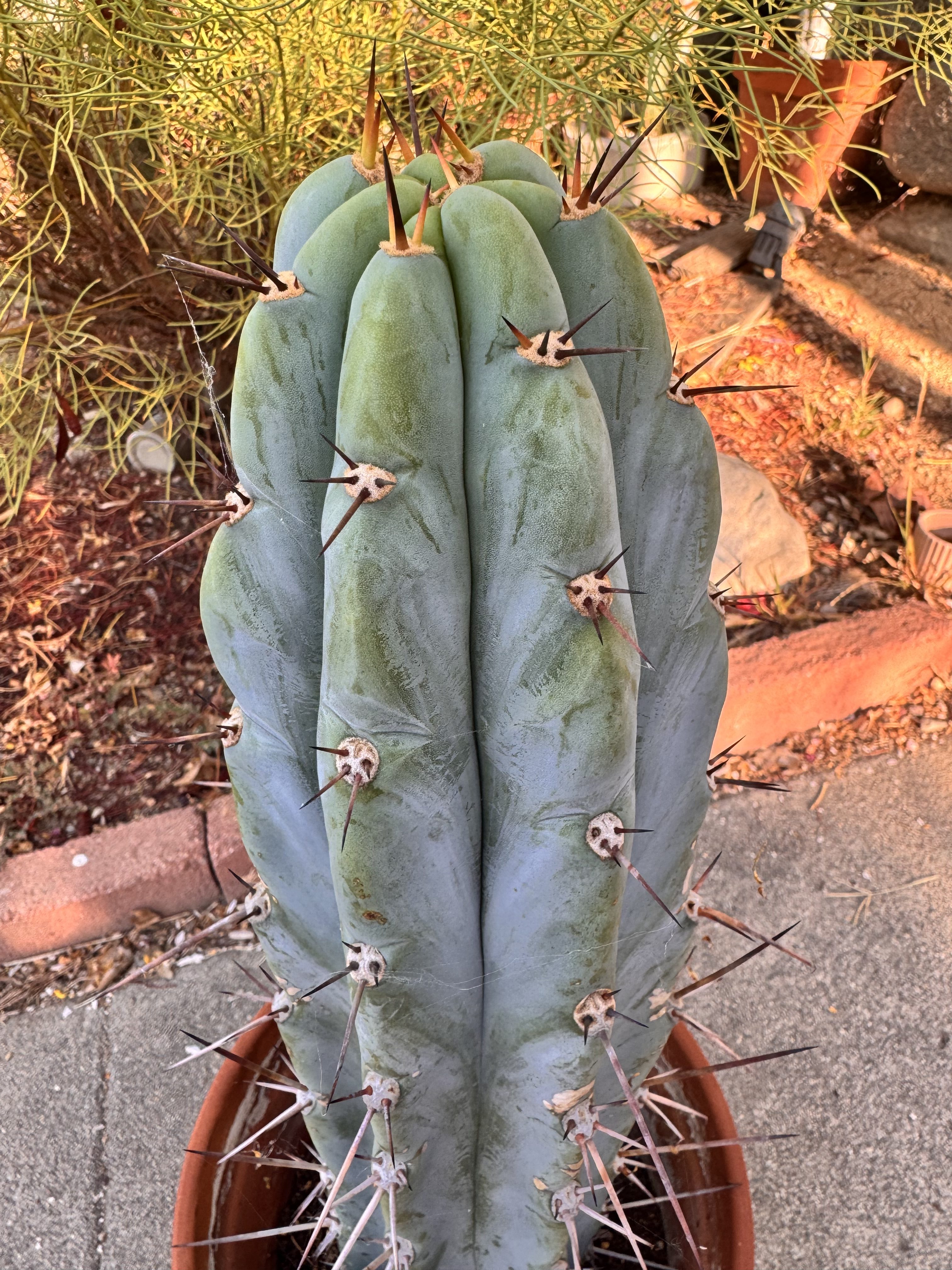 There is something different about this phenotype expression in Arid Art Macrogonus. The way the reddish spines express in colder weather, and how far and separated the areoles are vertically make for some very exposed glaucous blue wax. It’s such a gorgeous contrast of colors, it has to be at the top of the list of any peruvianus collector. I love it so much all I’ve been doing is rooting them. I have four of them rooted now I love it so much. These will be the first two I’ve ever offered.