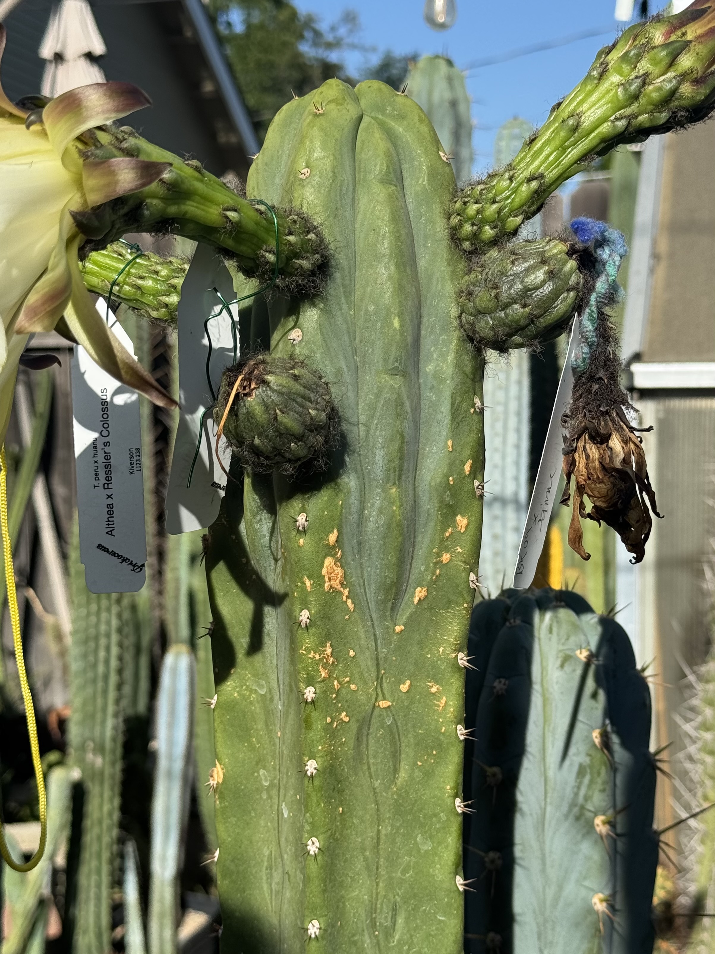 Echinopsis/Tricho cactus are well known for their big beautiful flowers at maturity. These plants will usually get to that place at 4-8 feet and specific growing conditions. Highly collectible for their looks, shape, and color, they make wonderful potted plants and landscaping plants.