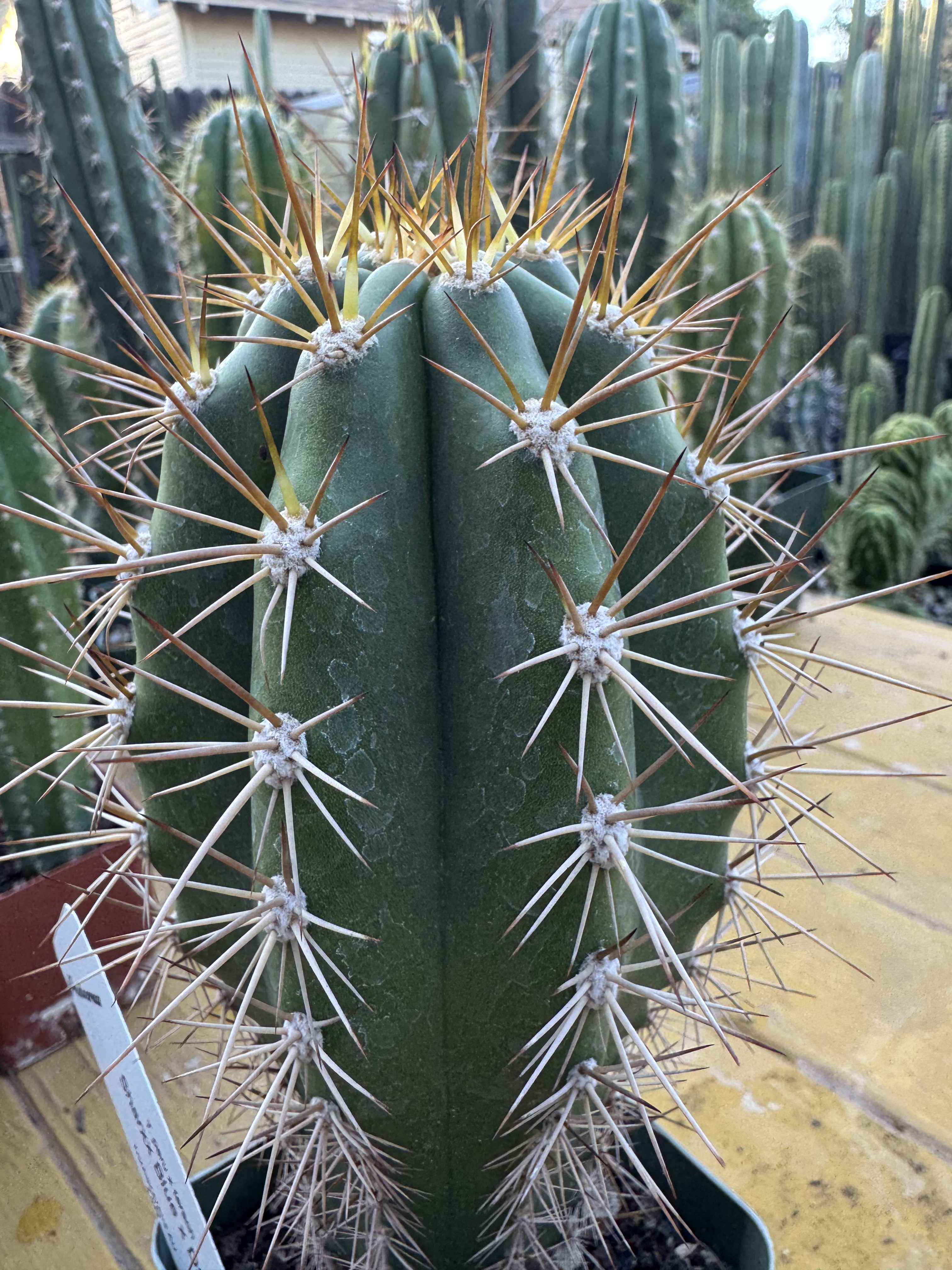 Seed grown Cereus huntingtonianus x validus that I crossed here in our garden.  Wonderful parents made this offspring