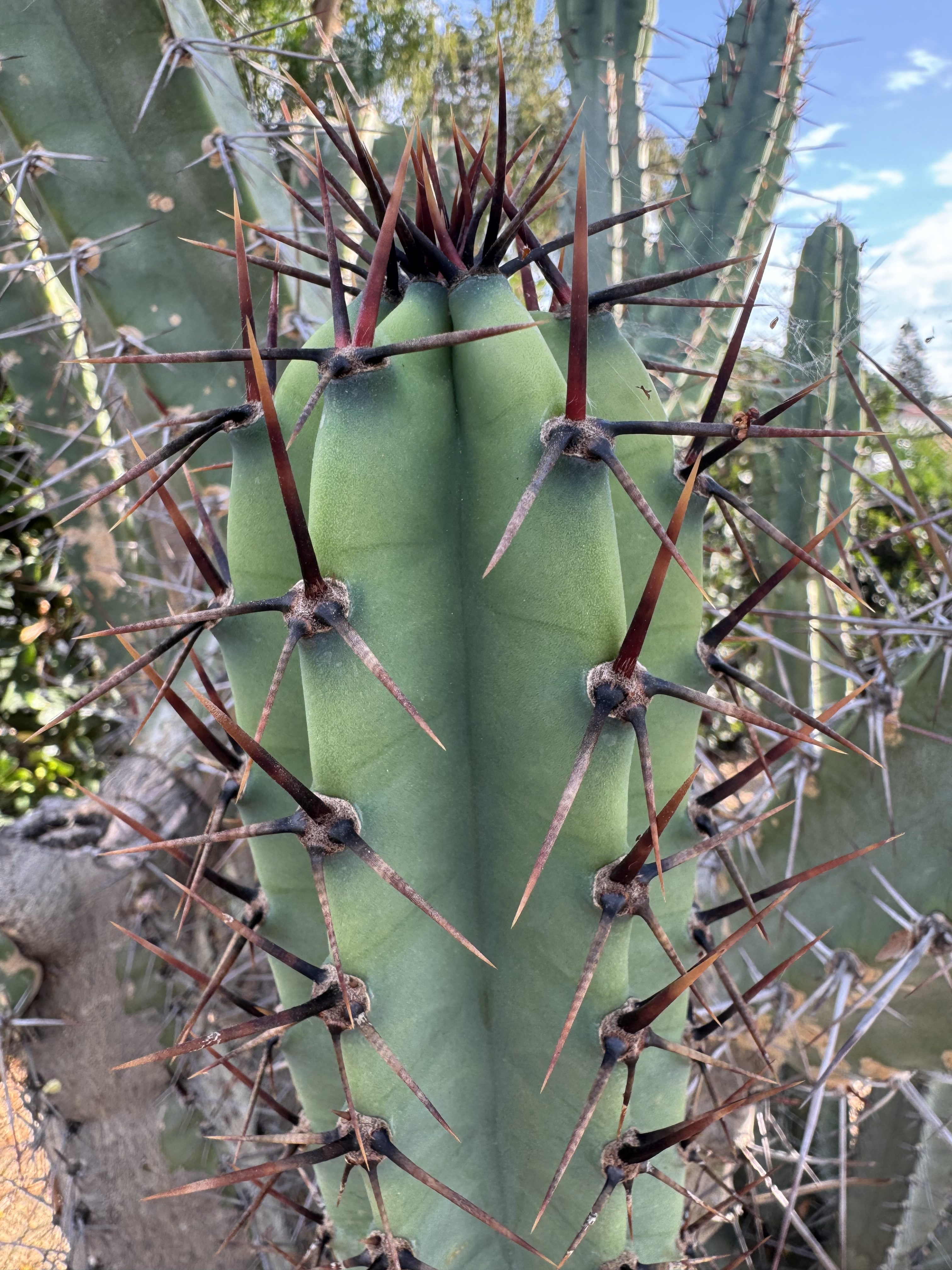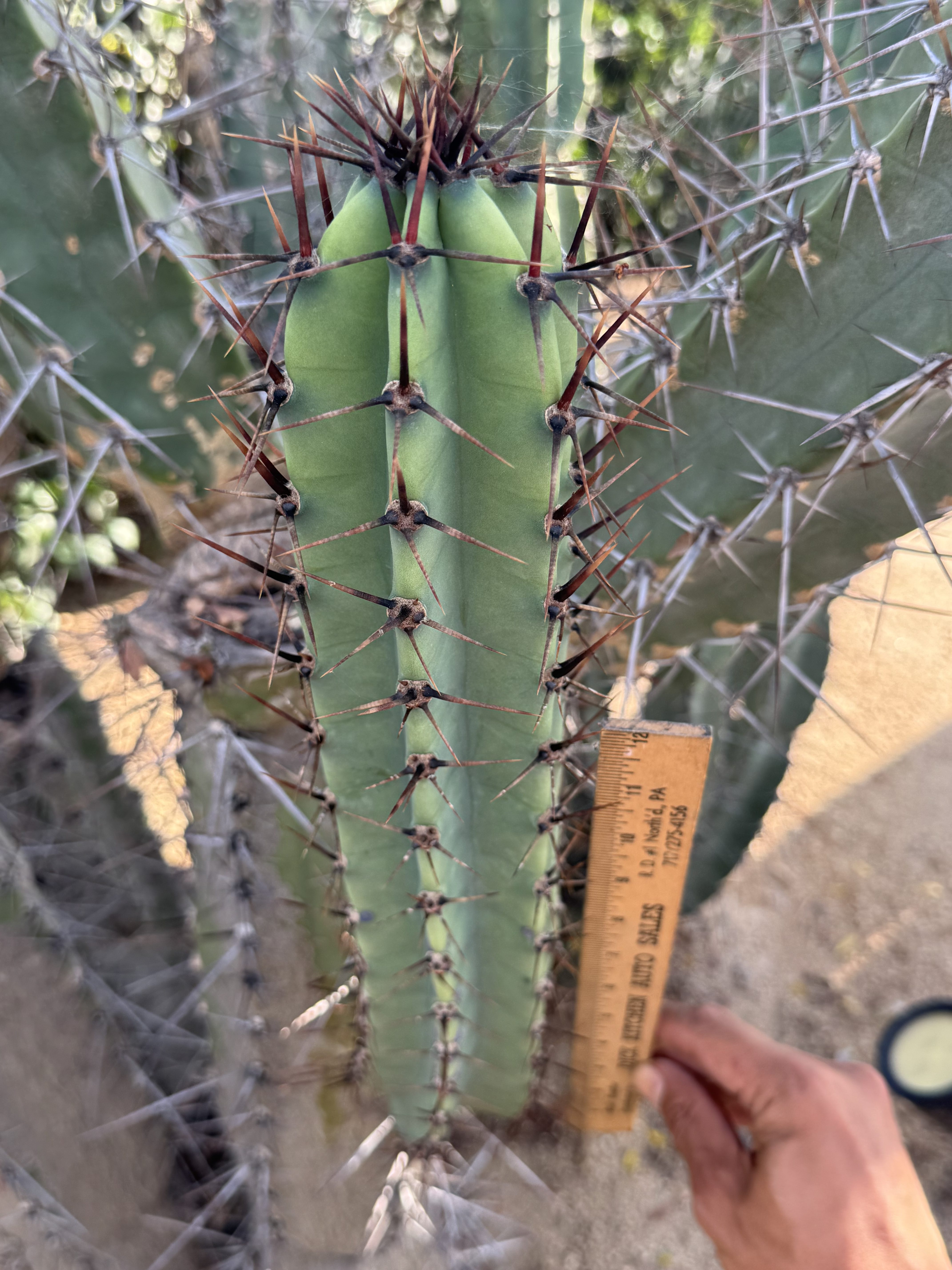 Cereus validus is endemic to Argentina, Bolivia and Paraguay.  This form is known for its intense red and black spines, on blue green epidermis.  The ever branching stand will produce beautiful light pink flowers surrounded by almost Fuschia colored sepals.  The magenta fleshed fruit was confirmed and had a slight acidity to counter the sweetness thats known from a regular “Apple Cactus”.  It’s a winner on all fronts.