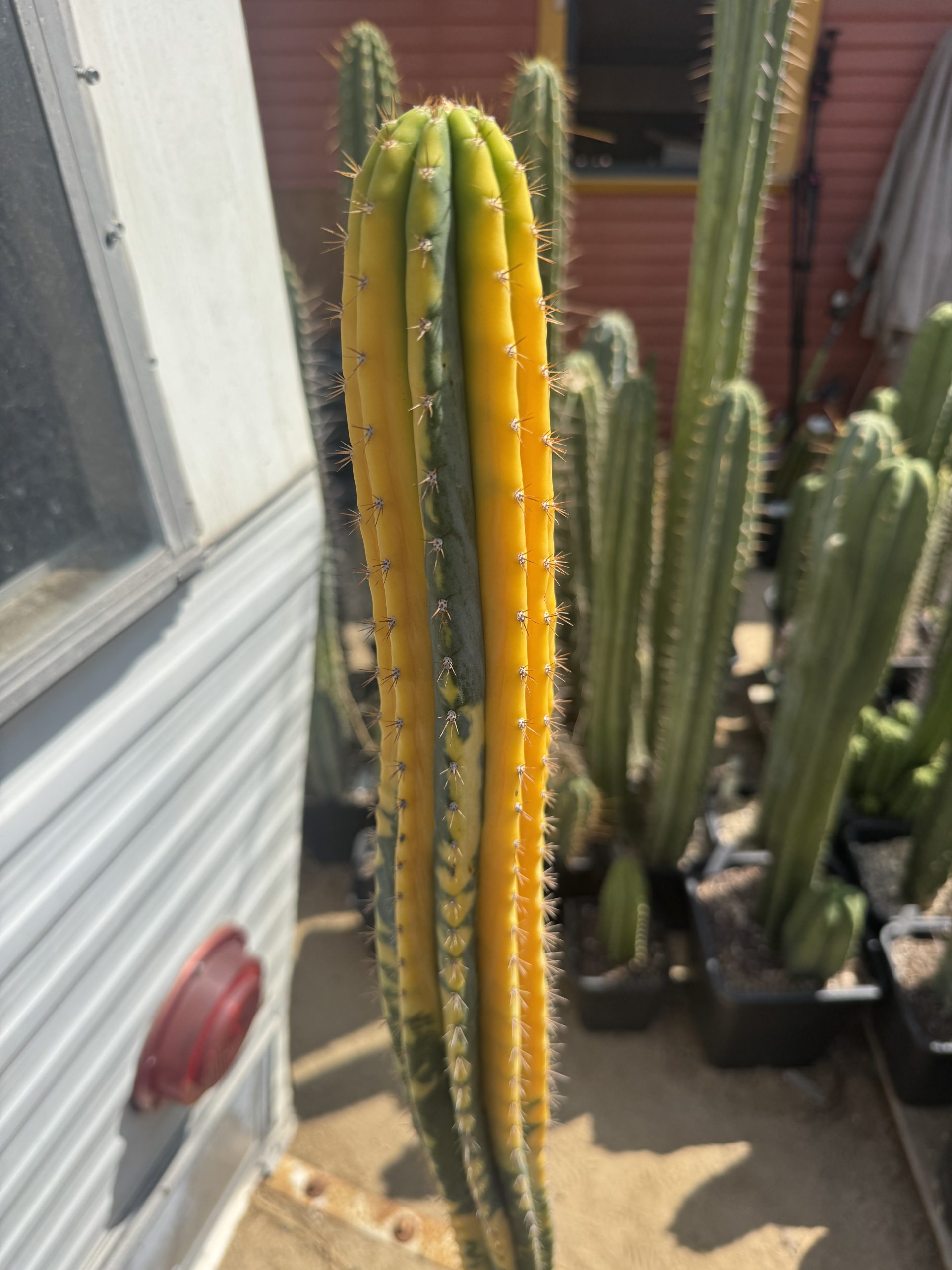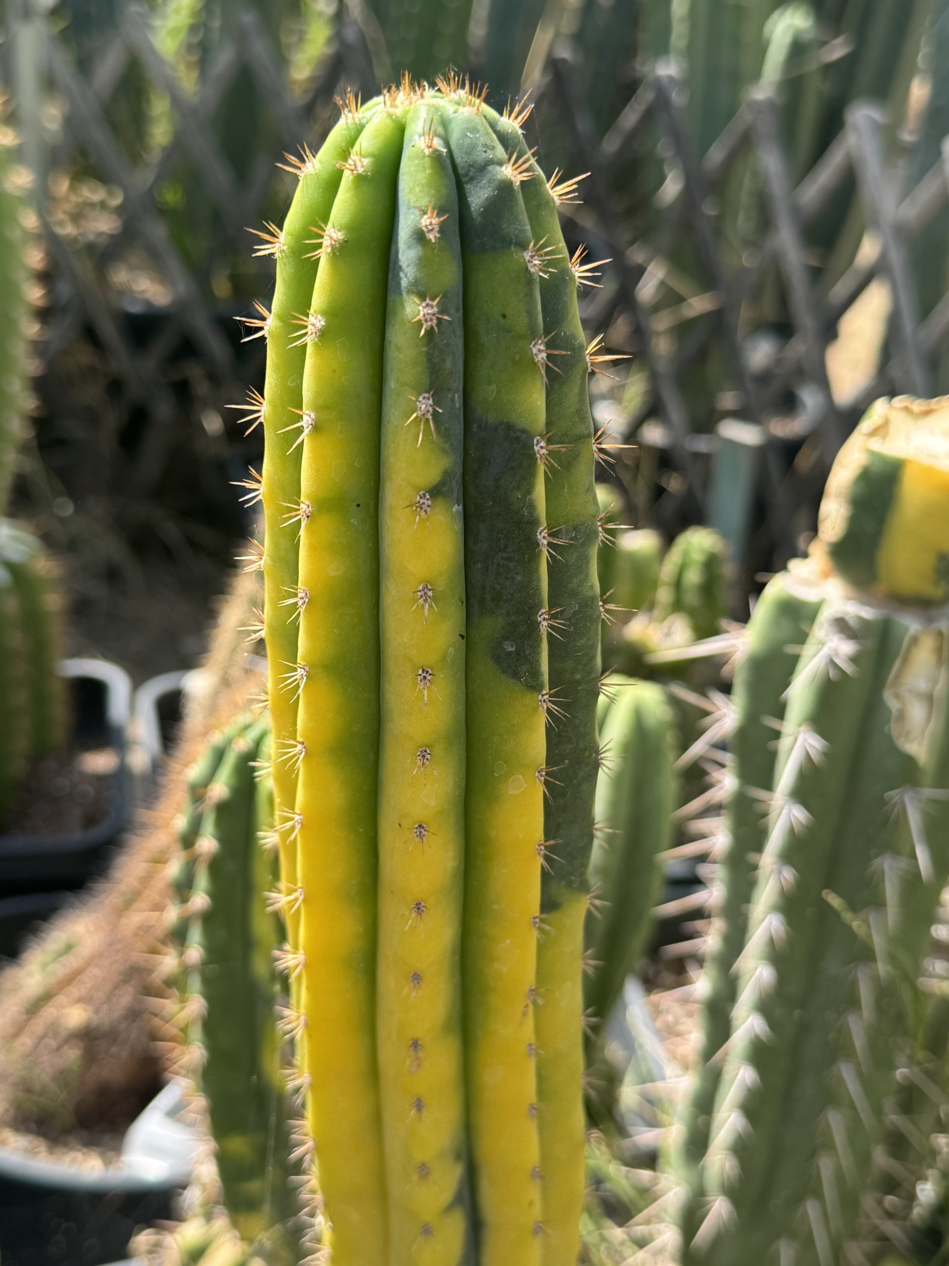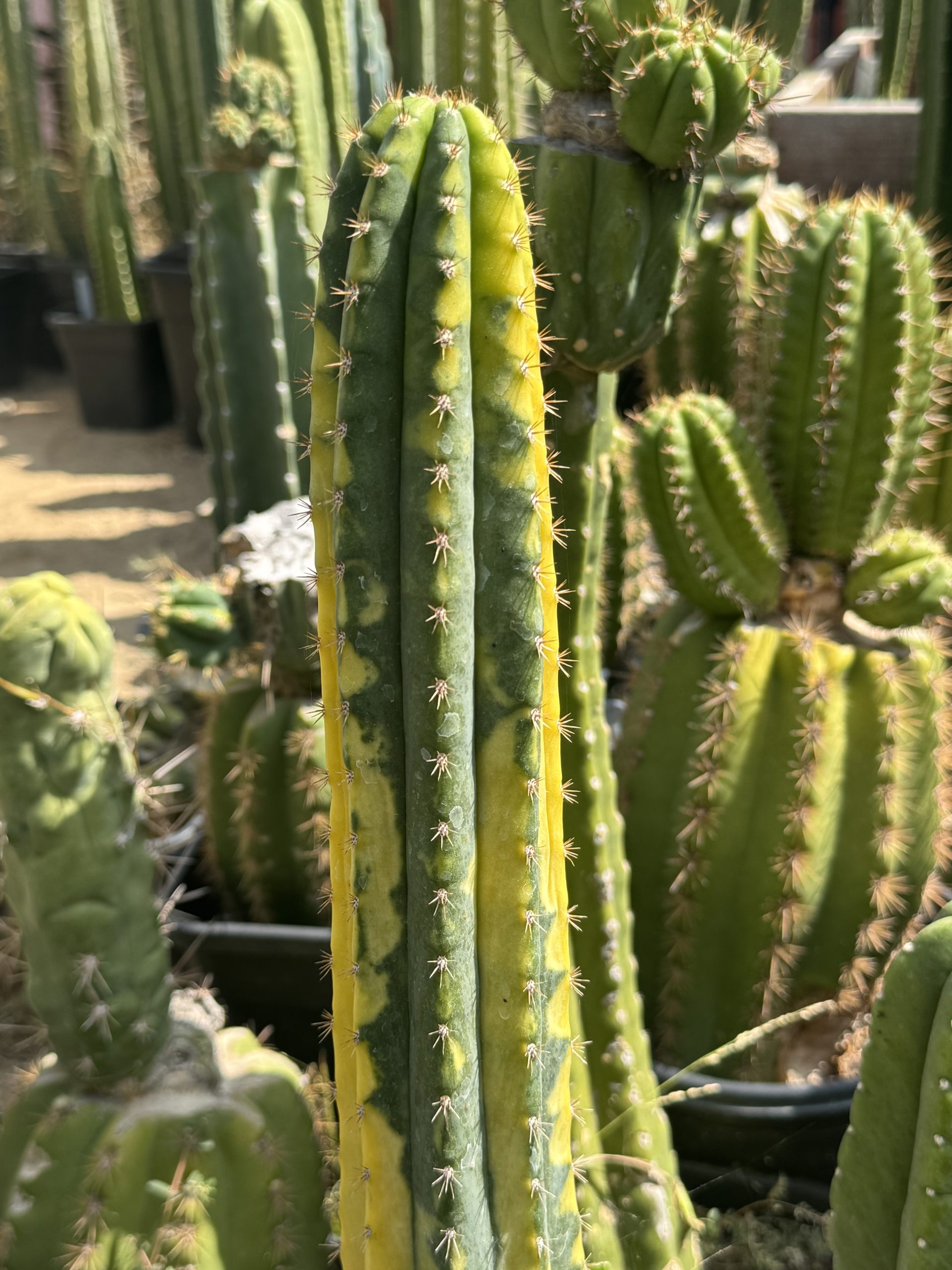 Collector’s Corner Variegated Peru. An Australian variegate with great color and shorter spines. Different from China Gold you may see from Asian imports. I believe the clone came from a seedling found at Collector’s Corner Victoria Australia. It was propagated for its interesting color for many years and brought over to the US.