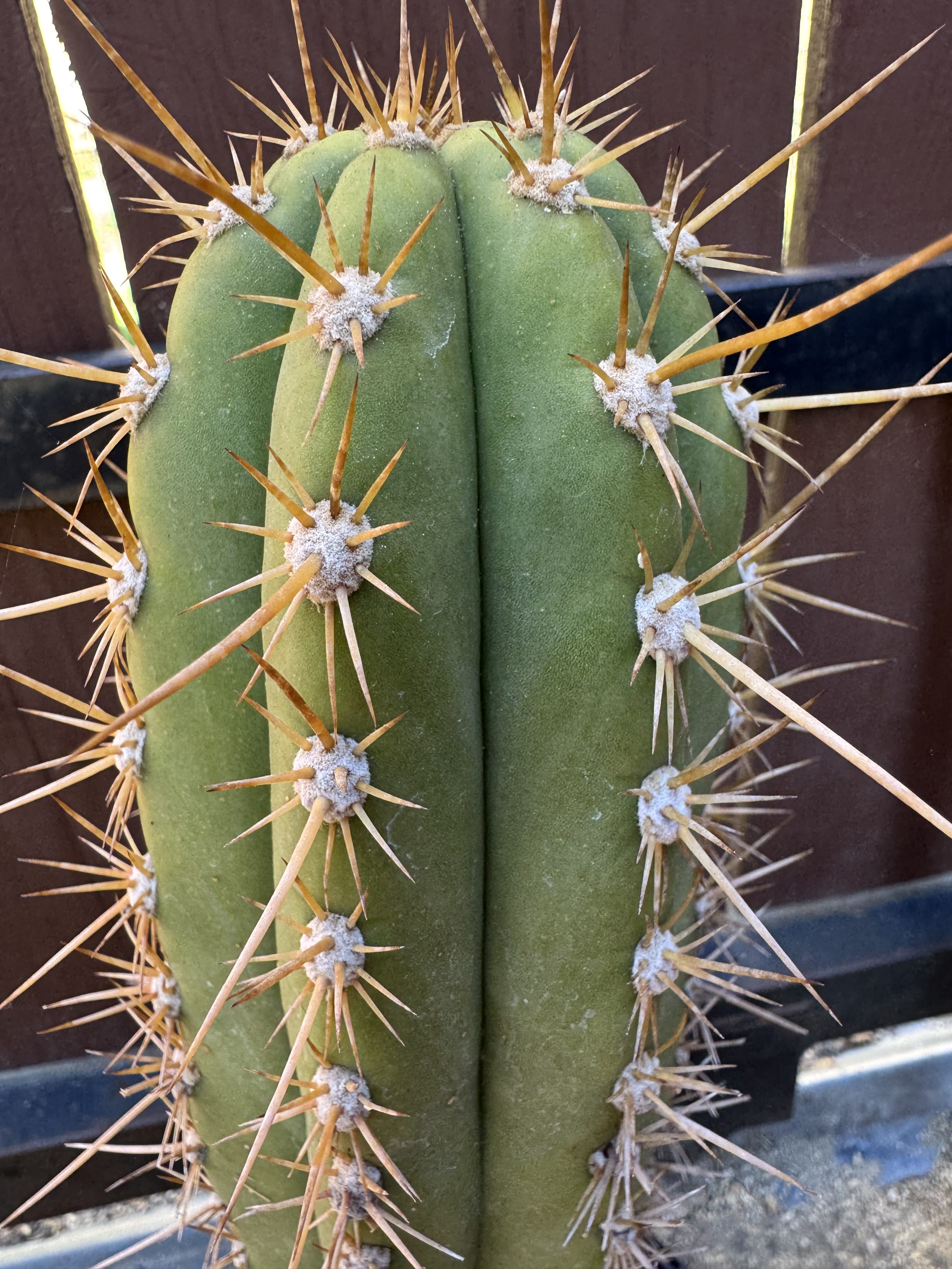 14″ growing well in ½ gallon. Needs an uppot or put it into the ground. Slight blue showing and the thickness and spination is mean.