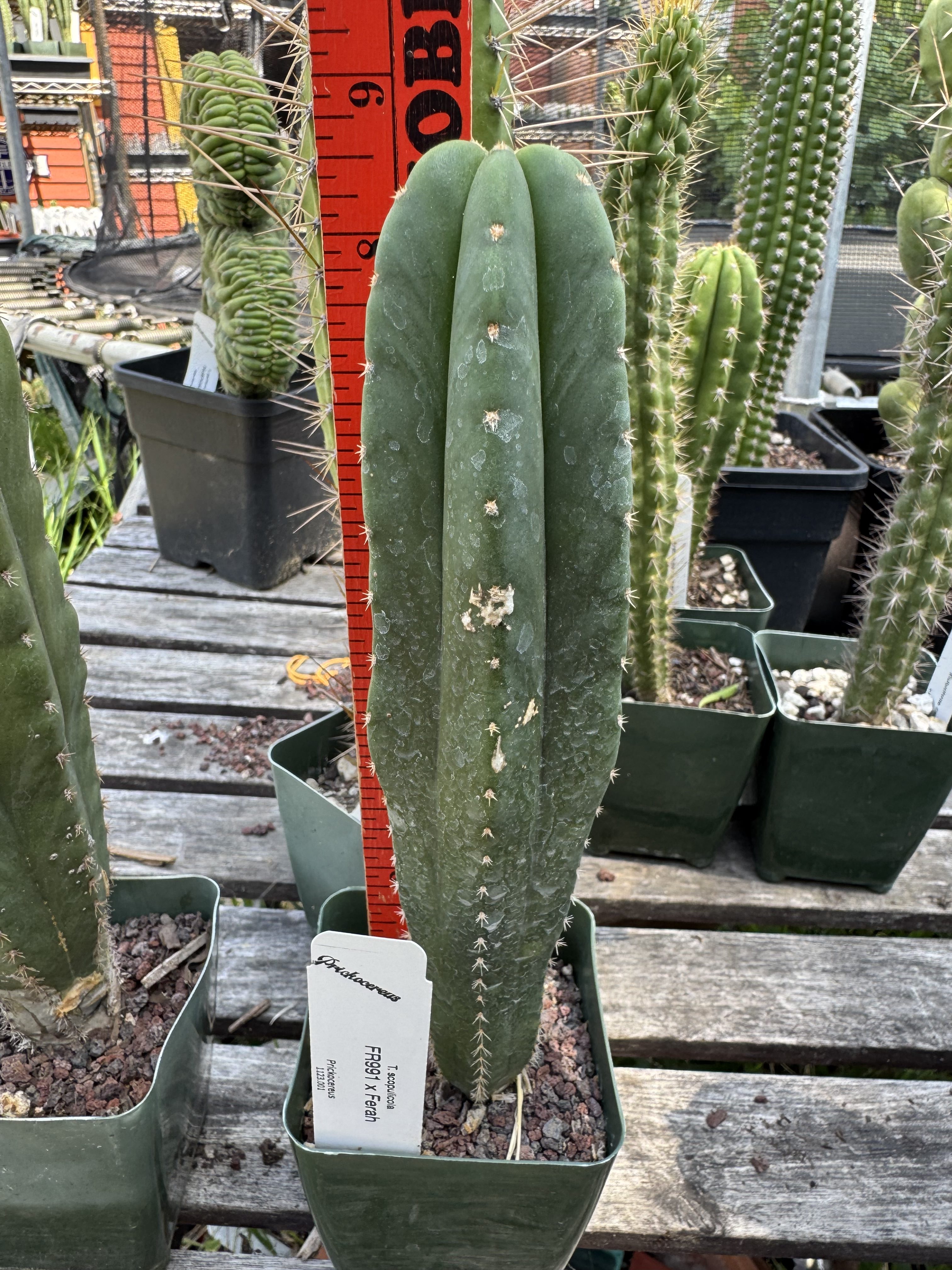 FR991 x Ferah seed grown Echinopsis scopulicola from the Prickocereus garden. Two great genetics put together here. We love all the scops, and the seedlings and yearlings are no exception. The very smooth sometimes leathery skin, and very short spination is a fan favorite of Echinopsis collectors. Sown here in our garden.