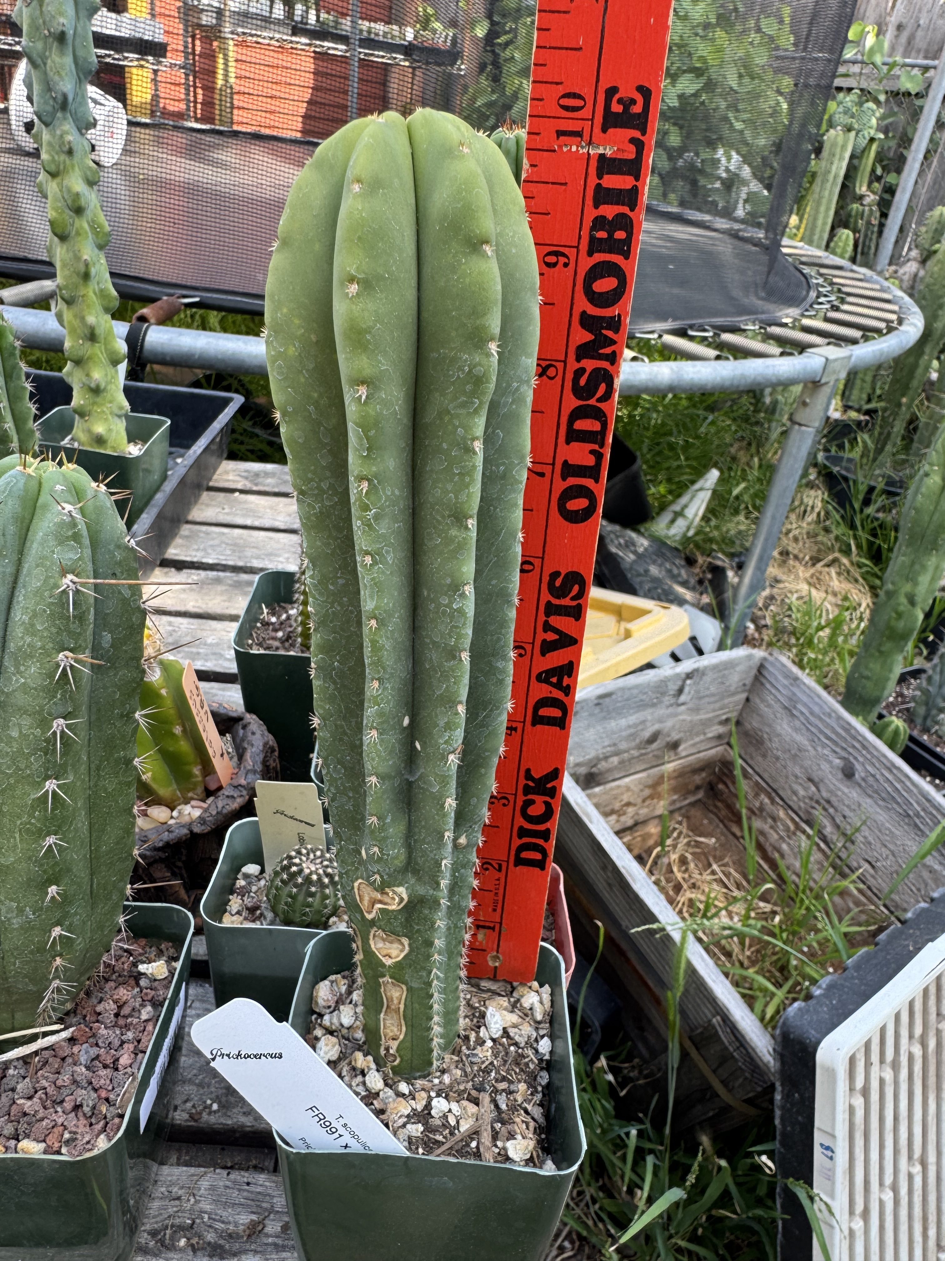 FR991 x Ferah seed grown Echinopsis scopulicola from the Prickocereus garden. Two great genetics put together here. We love all the scops, and the seedlings and yearlings are no exception. The very smooth sometimes leathery skin, and very short spination is a fan favorite of Echinopsis collectors. Sown here in our garden.