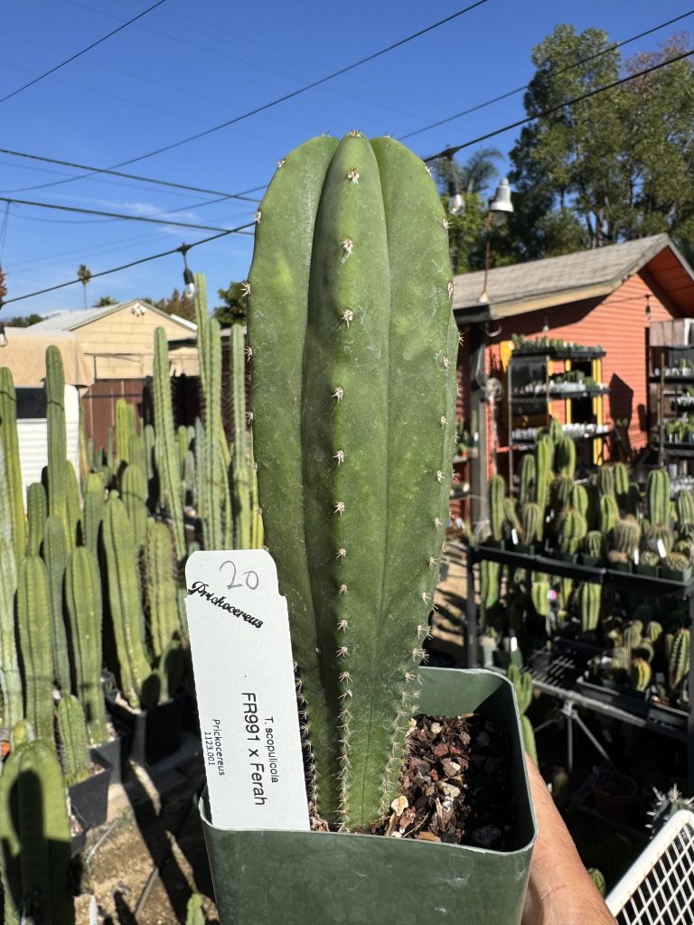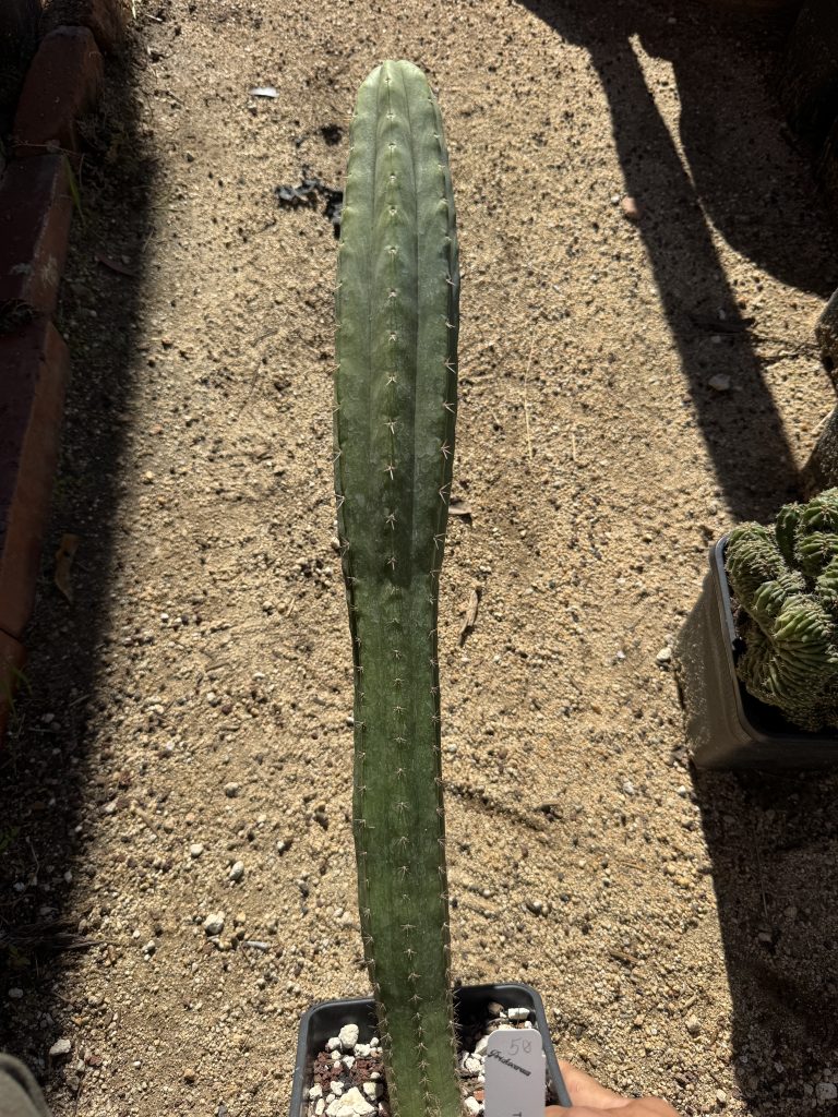 Seed grown Trichocereus scopulicola from K.Iverson seed. Three way full scop genetics made here in Southern California, Glad to grow out these genetics. The very smooth sometimes leathery skin, and very short spination is a fan favorite of Trichocereus collectors. Sown here in our garden.