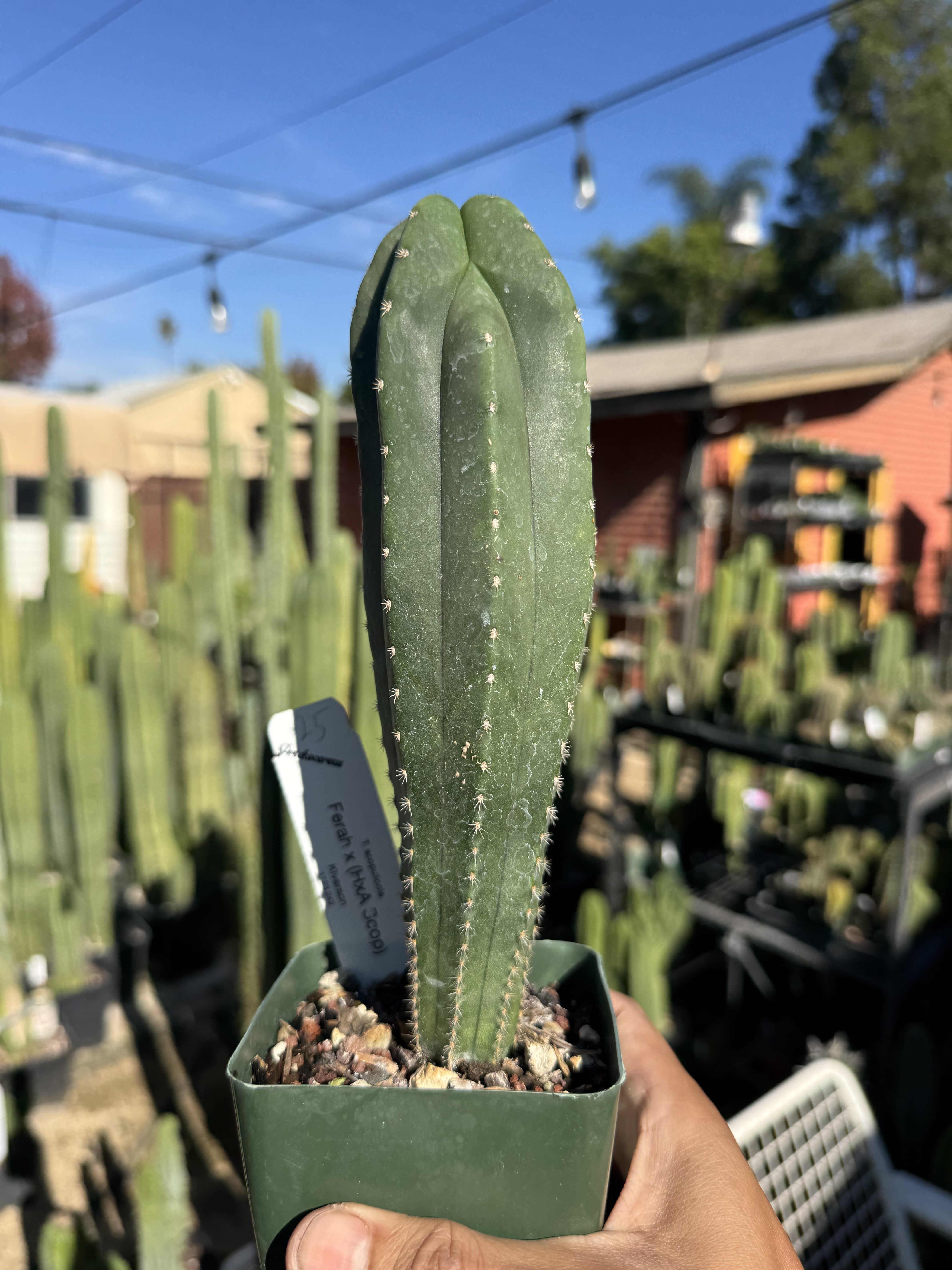Seed grown Trichocereus scopulicola from K.Iverson seed. Three way full scop genetics made here in Southern California, Glad to grow out these genetics. The very smooth sometimes leathery skin, and very short spination is a fan favorite of Trichocereus collectors. Sown here in our garden.