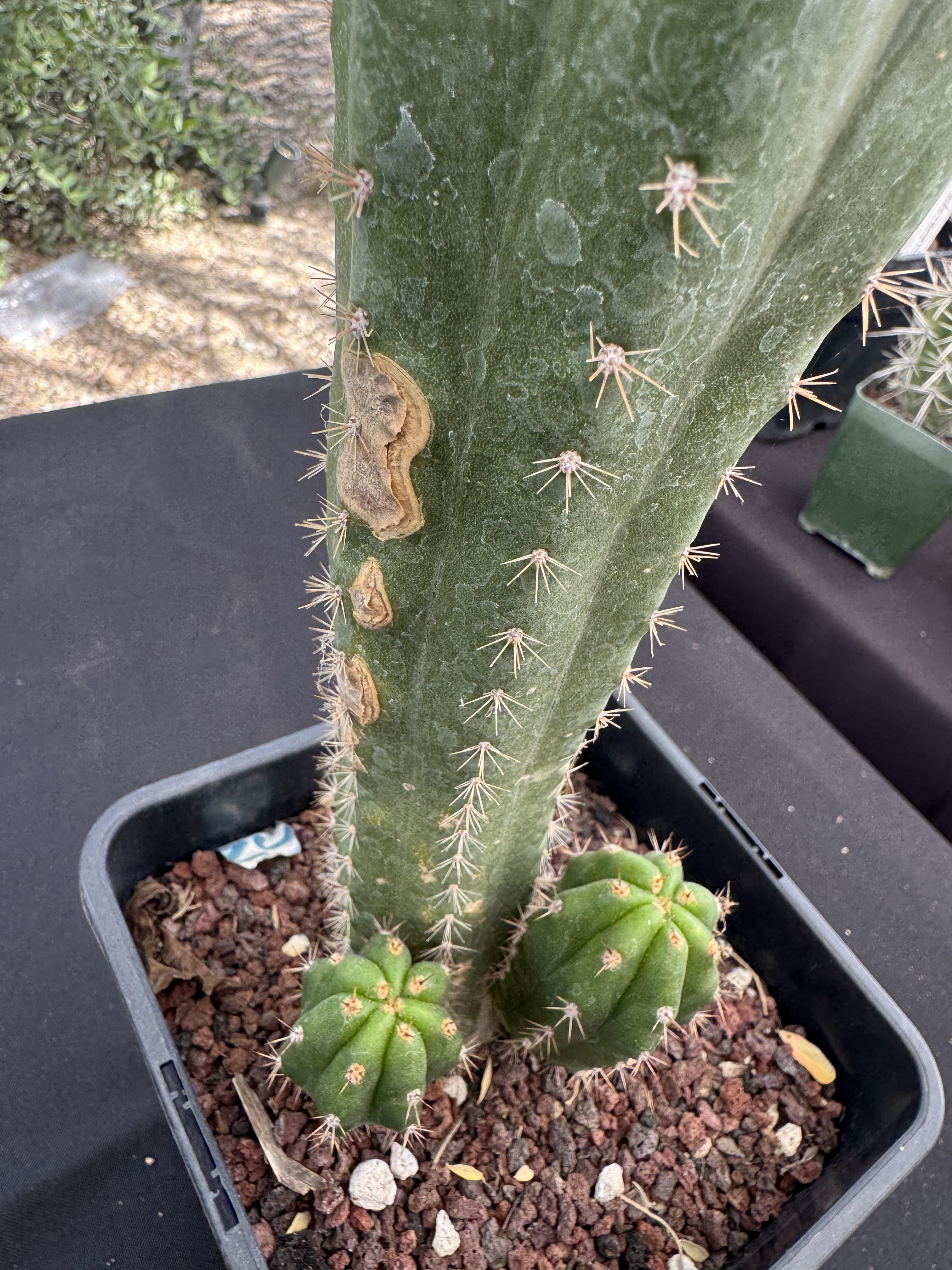 18″ in a ½ gallon will be ready for an uppot or the ground. This ones large and already starting to basal offset. A couple callused scars pictured.