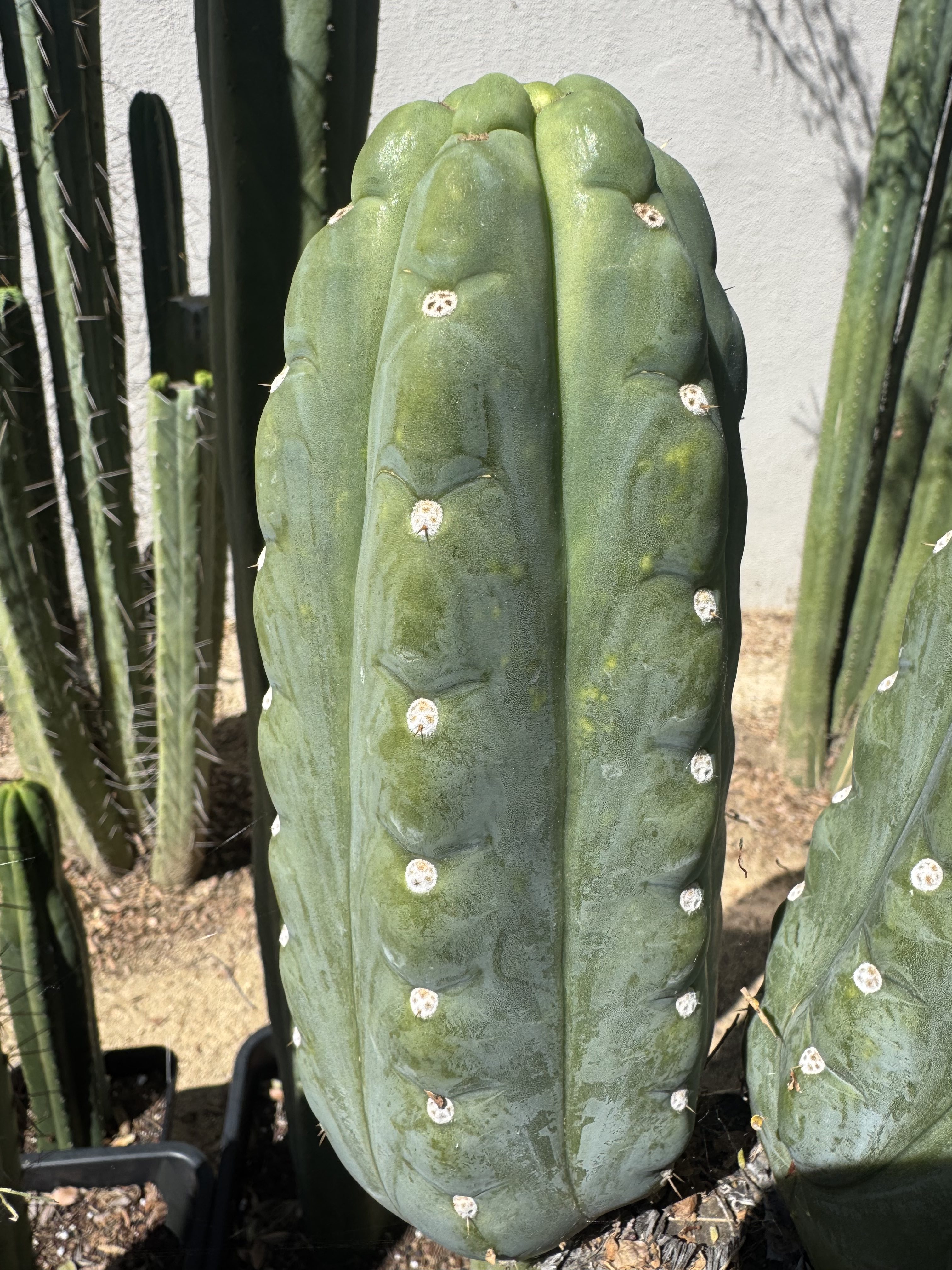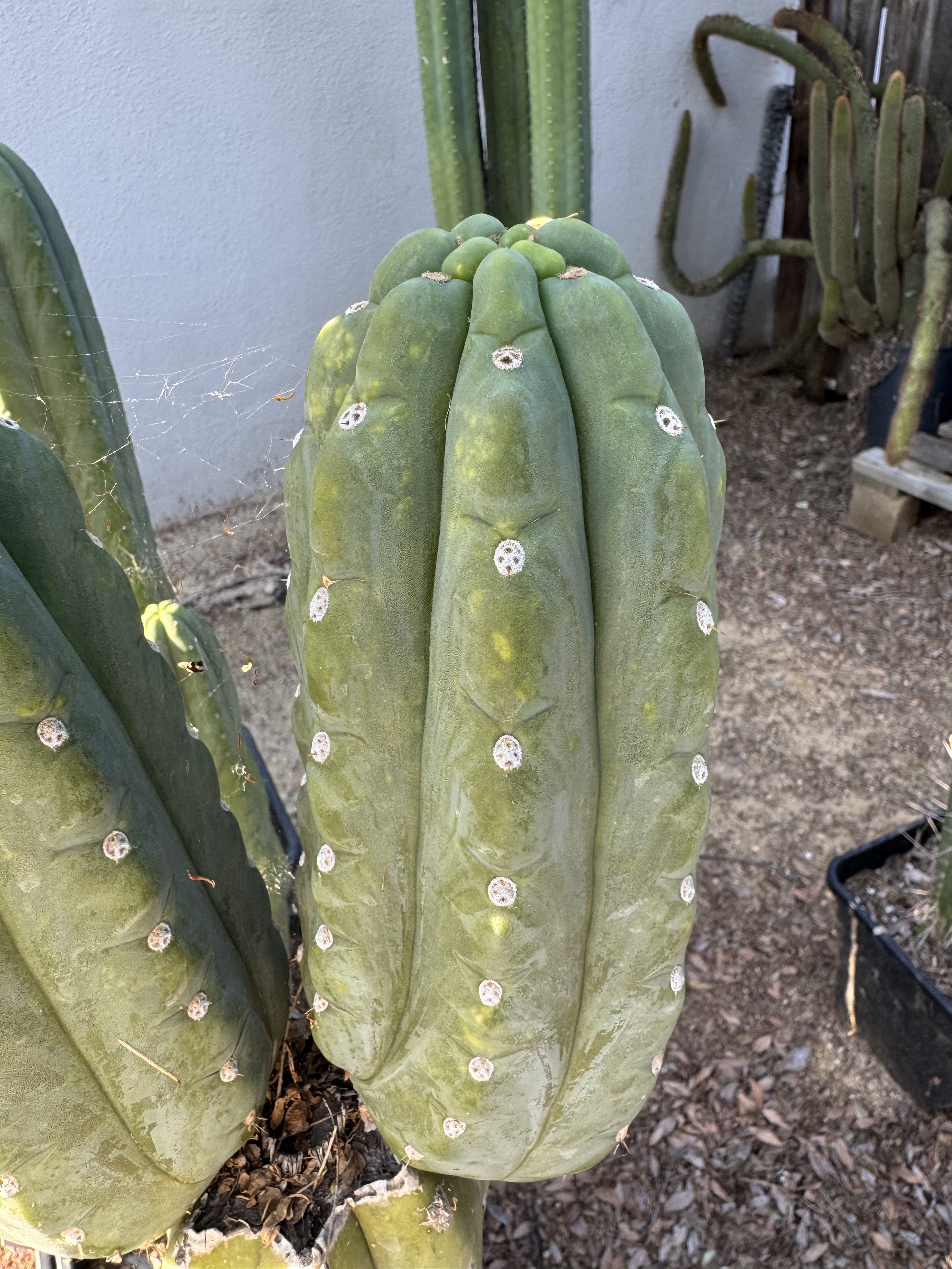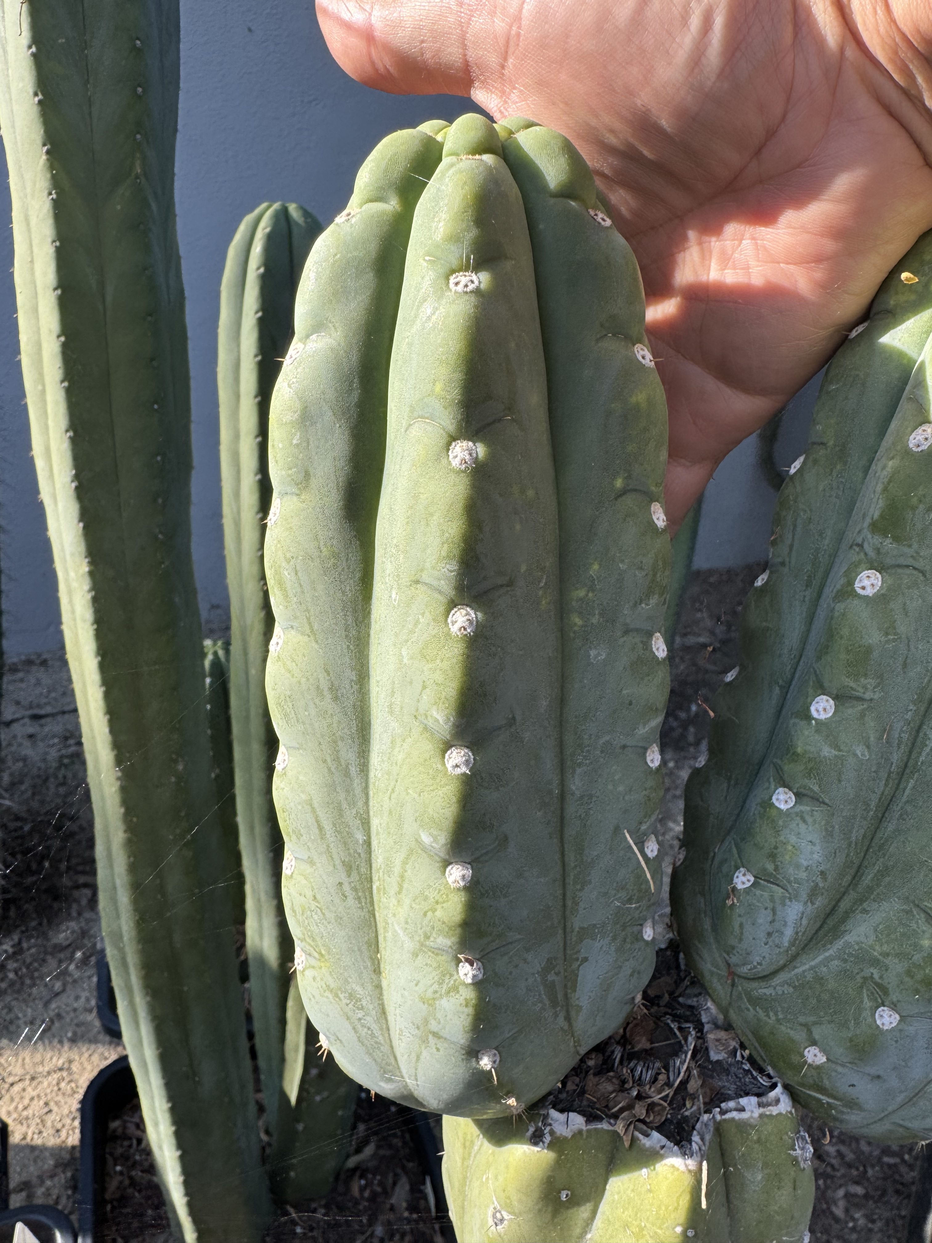 Everyone’s favorite notchy Tricho. Ichoca comes from an Ancash, Peru village and is considered a T. santaensis to some. The phenotype of this plant shows some pachanoi and possibly peruvianus to it, because of its short spines and glaucous blue expressions. One of our favorites because of that profile.