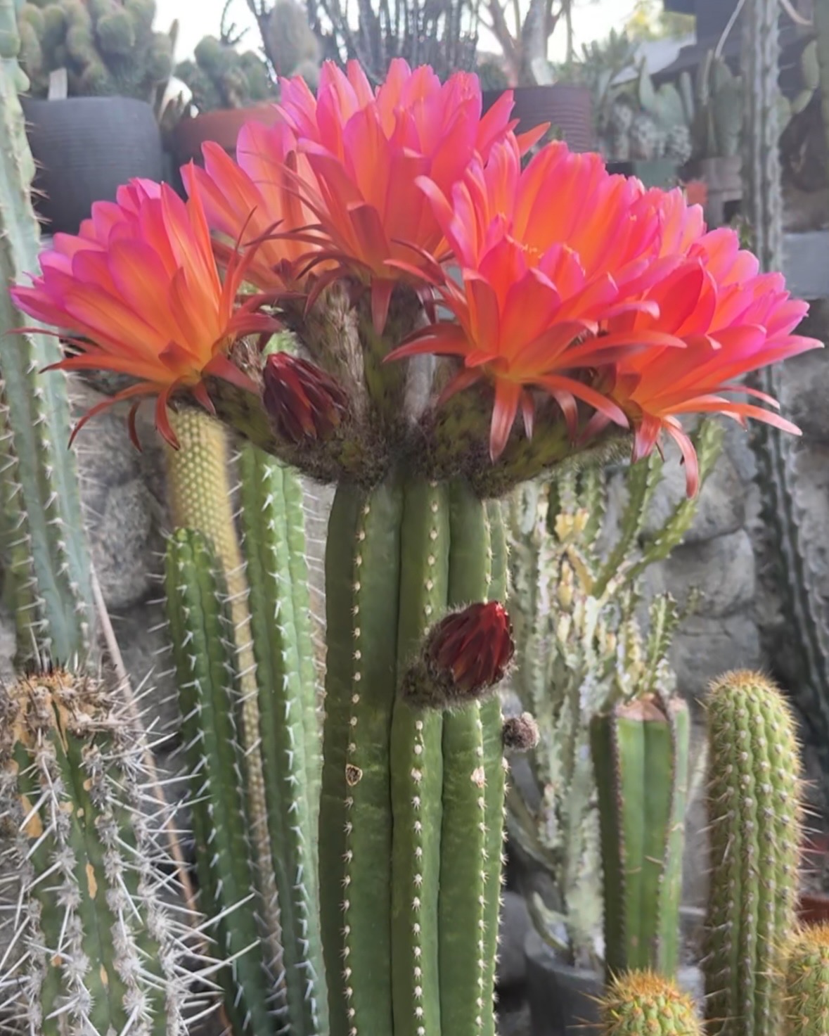 Echinopsis/Tricho cactus are well known for their big beautiful flowers at maturity. These plants will usually get to that place at 4-8 feet and specific growing conditions. Highly collectible for their looks, shape, and color, they make wonderful potted plants and landscaping plants.