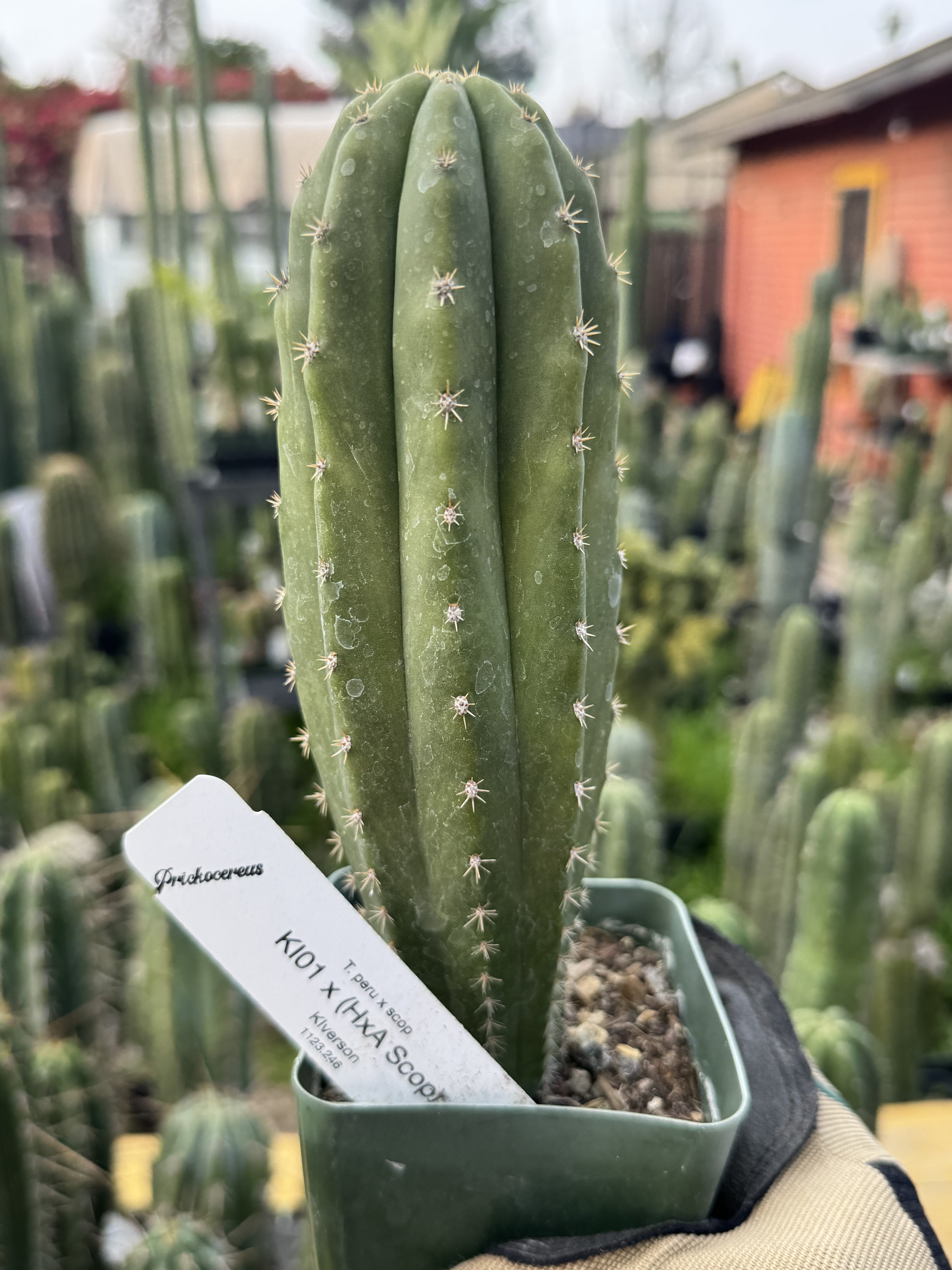 Seed grown T. peruvianus x scopulicola.  Seed created KIverson’s garden, this one matches a very nice peru with our big scop together, KI01 is a nice short spine peru from Kohl, and Heynes Aaron is one of his thick stops he also grew out.