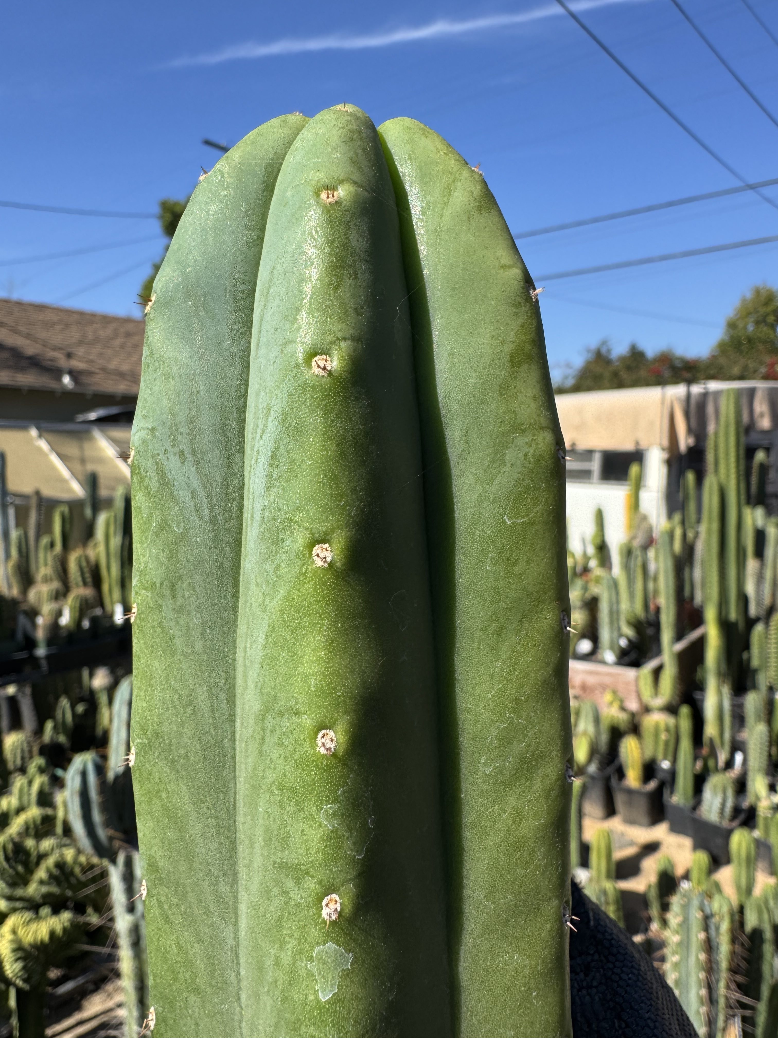 Lima Flowers Market T. pachanoi from Peru. LFM/MT08 Came directly from the Peruvian market through Manuel Terra. A true form of pachanoi with the short spines and smooth skin that is well known in the area.