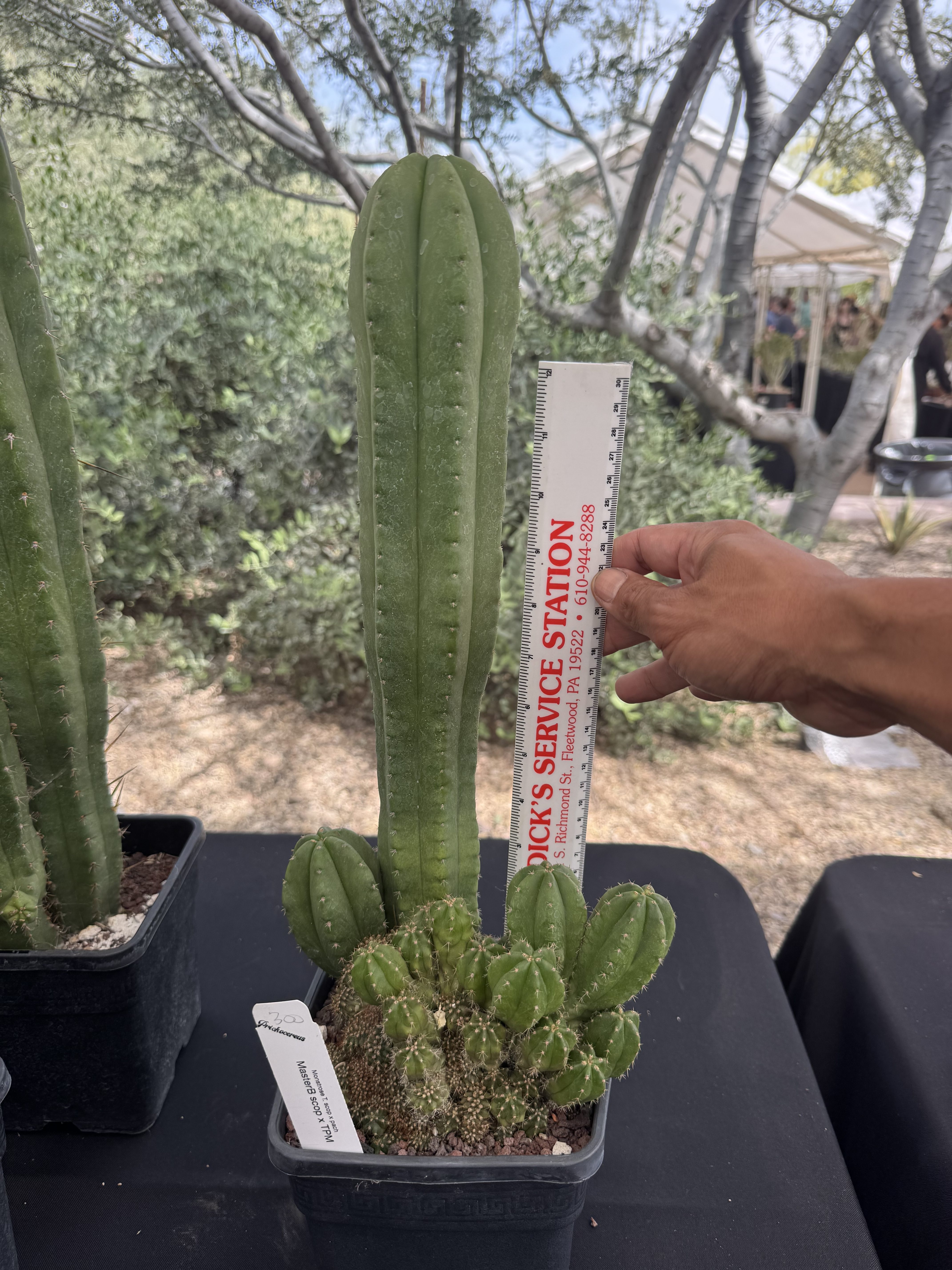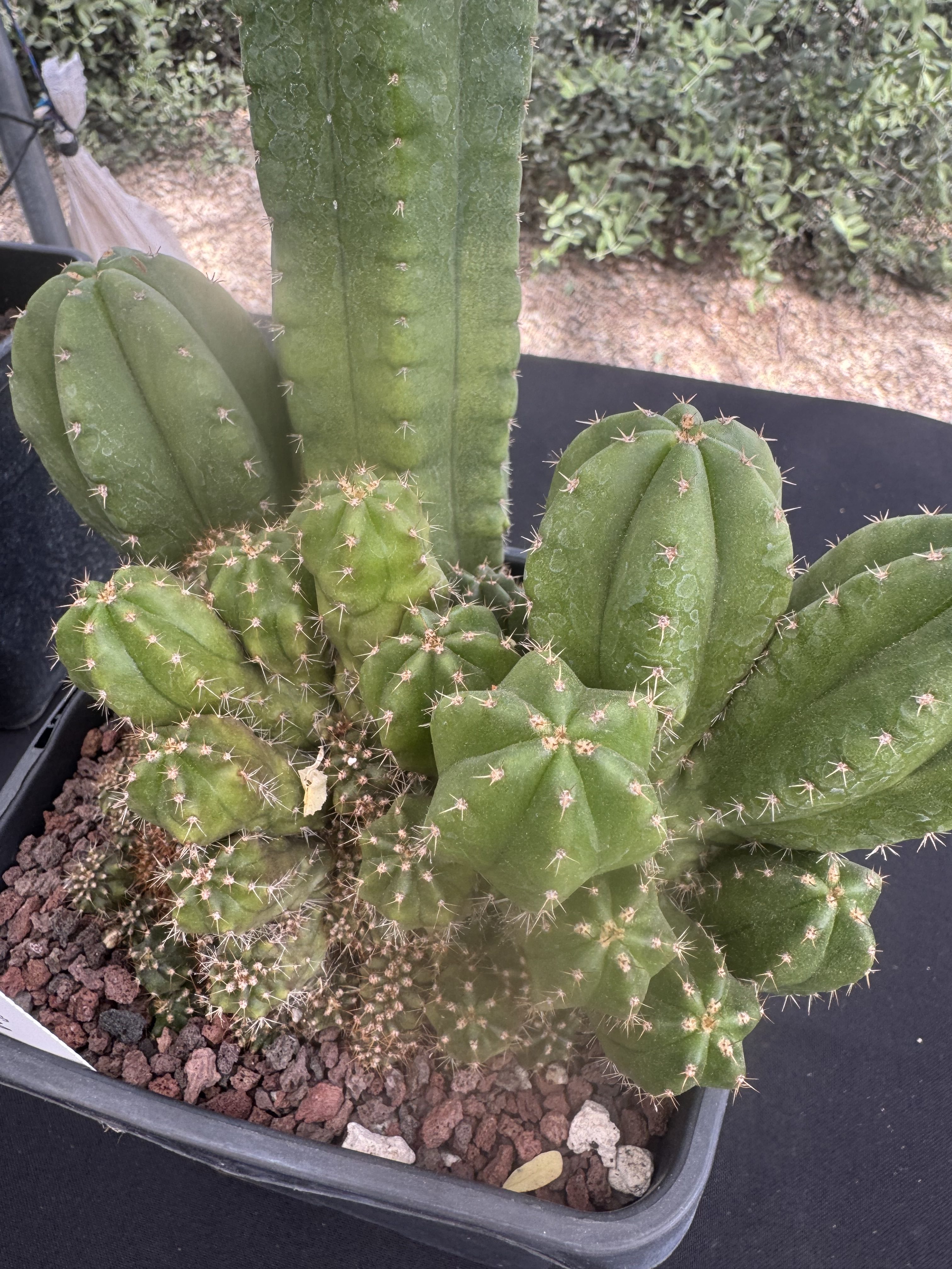 MasterB scop x TPM.  By leaving the reverted column, we are seeing some very nice closely spaced areoles giving that slouched look.  Everyone wants to see the shorter spines on these monstrose crested plants by trying to get the scop to be more dominant.