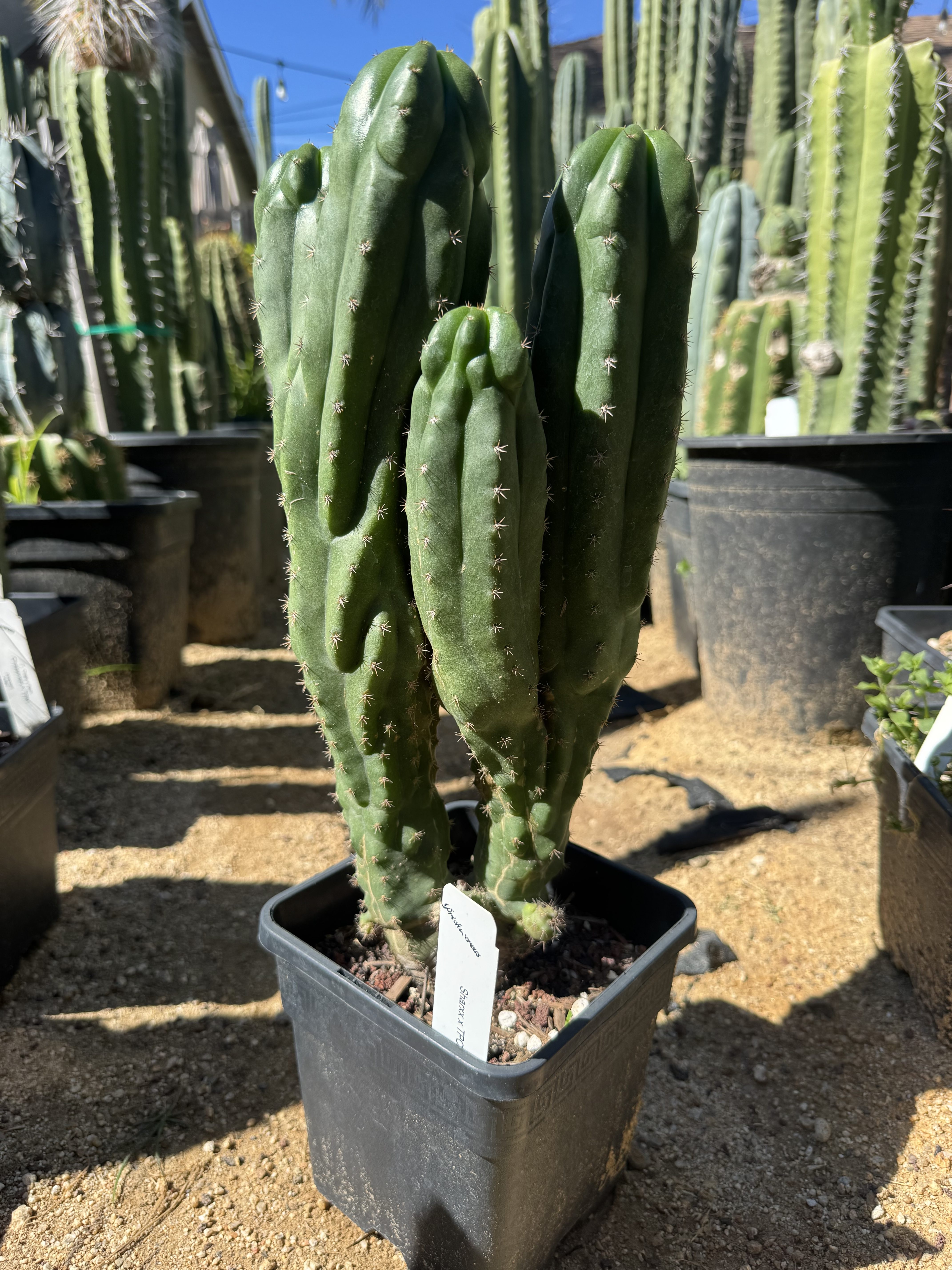 A very nice example of a monstrose scopulicola hybrid in the ½ gallon. Why do I keep letting these out! I love these shiny scopulicola hybrids, so weird and this ones rocking three branches and more weird areoles.
