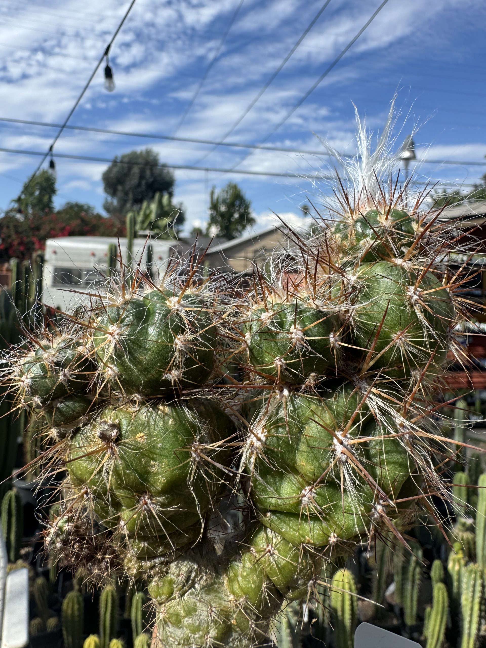 Oreocereus celsianus stacker is a monstrose form not seen too often. Stacking of offsets happens in certain plants when the pup terminates on its own and offsets over and over.