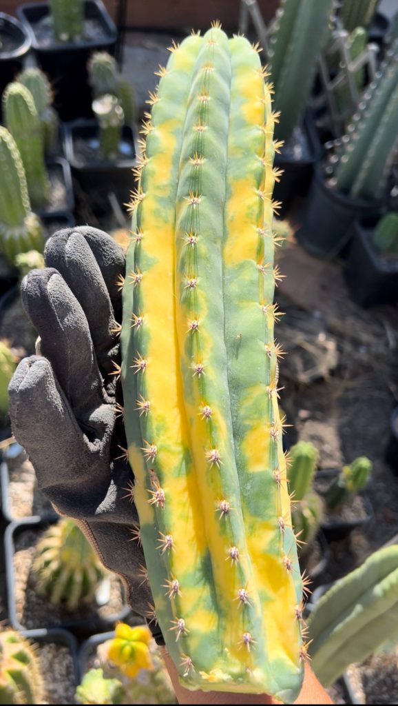 As with a clone like this, its very important that the areoles are healthy for new offsets to grow if the tip ever terminates just like TBM. Thats why you won’t find this available without spines and areoles attached. Also why it’s offered as a nice rootable sized cutting instead of just propagation pieces.