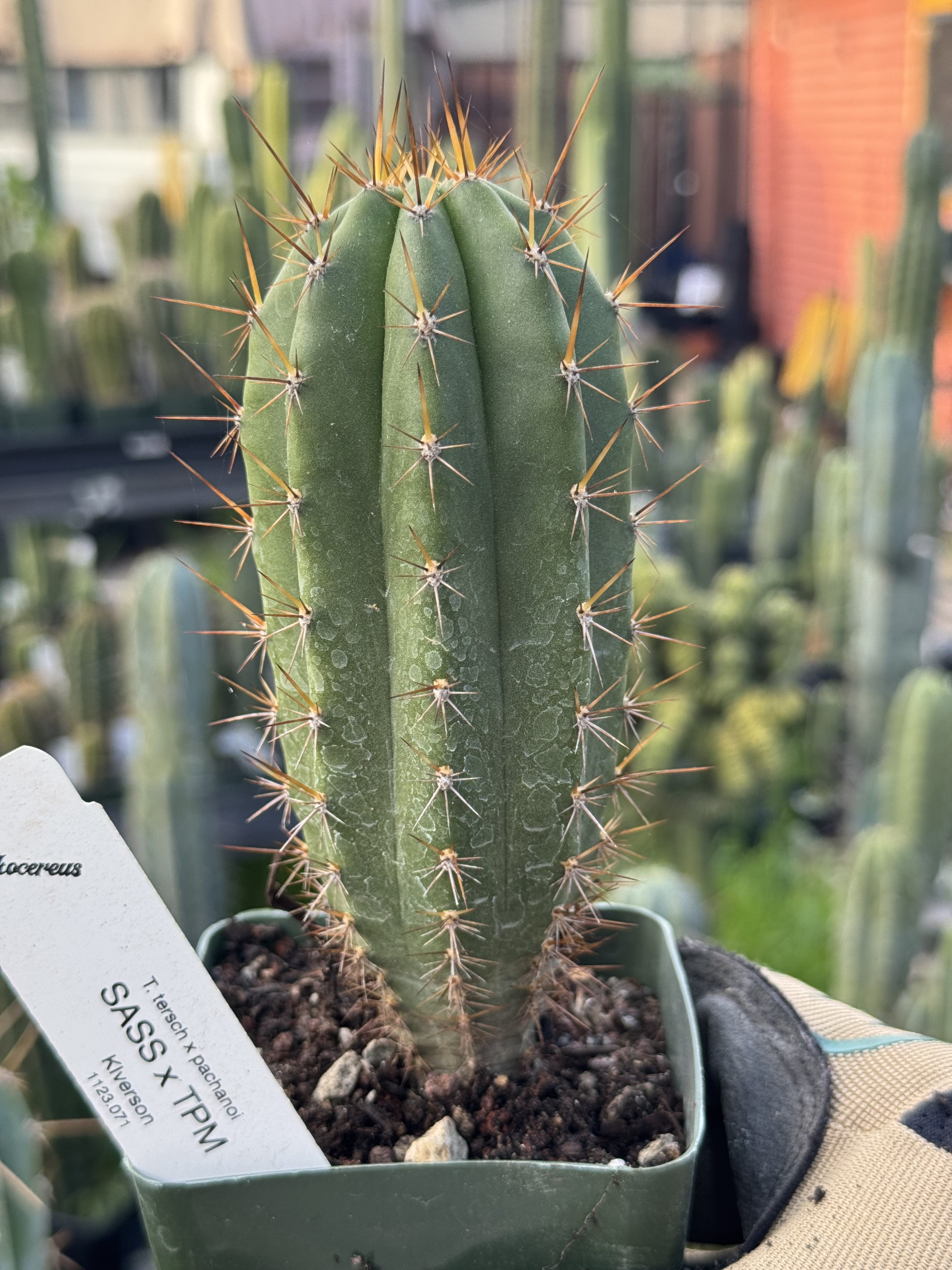 Seed grown E. tersch x pach.  Seed was created by KIverson, on the Prickocereus property 🙂  A Collab you may say!  These SASS x TPM have had such variability it’s so nice to see them all growing out in different ways.  Not everything was monstrose, but I kinda prefer the notchy forms I’m starting to see on these fat columns.