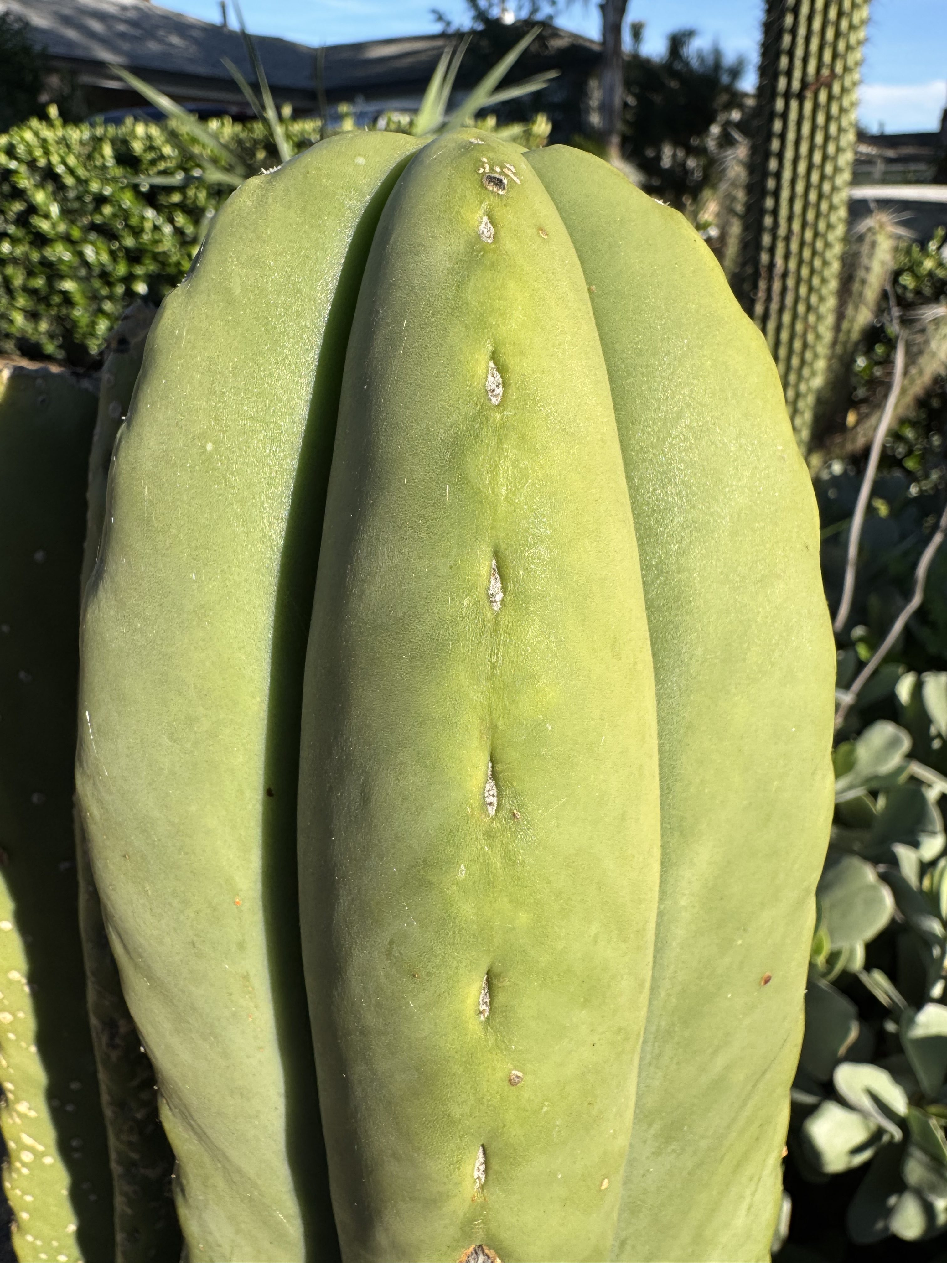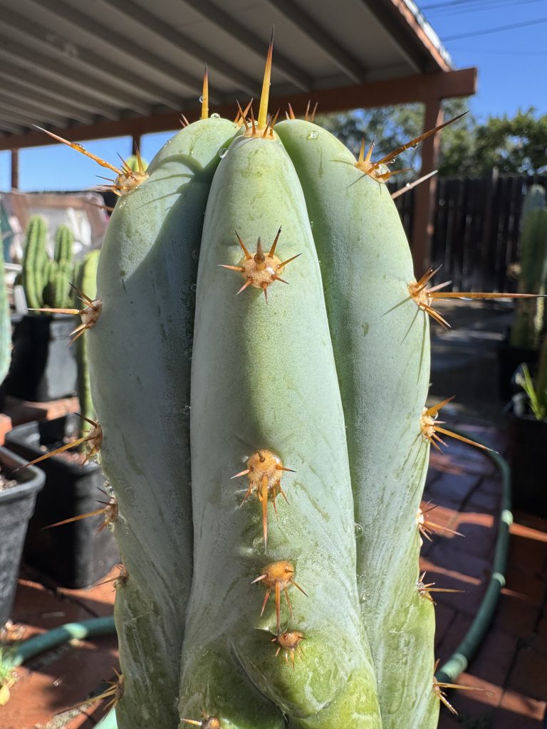 This is my gorgeous Scop on Eileen hybrid. It came from seed MasterB made in 2015. A match made in Bolivia, this is what a hybrid of a scopulicoli and bridgesii can look like in your dreams. A very short spine, and elongated areole look to the very leathery skin is gorgeous. They belong to each other.