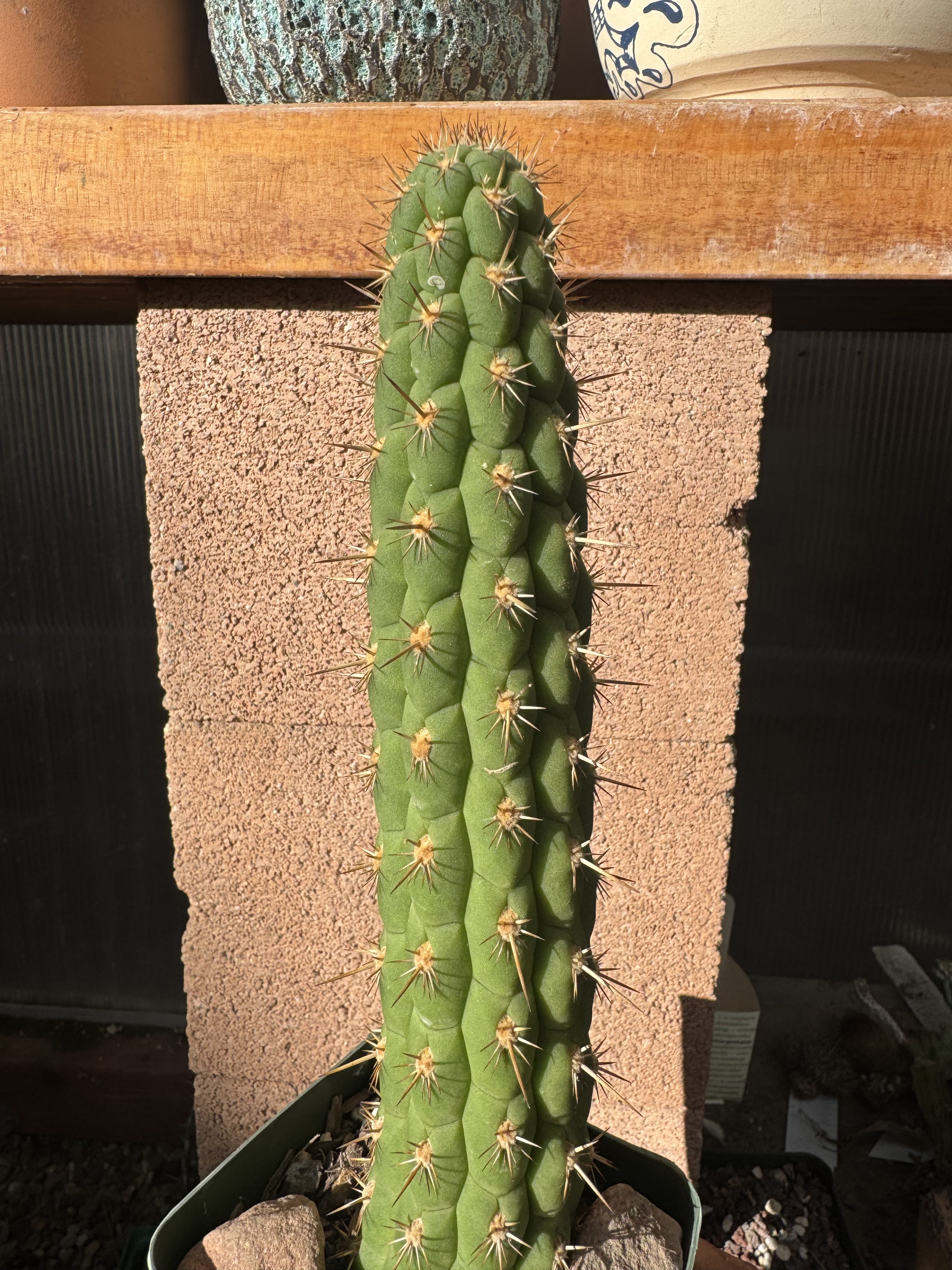 This is a propagation of my Loxanthocereus sulcifer I sowed back in 2020. The lone survivor at the time. The cuttings are thicker then the seed growns thats for sure. The sometimes synonymous genus of cleistocactus, borzicactus ,and loxanthocereus exist in this fun tubercle shaped world. This one has flowered and made fruit for me, but for now we have this rooted piece.