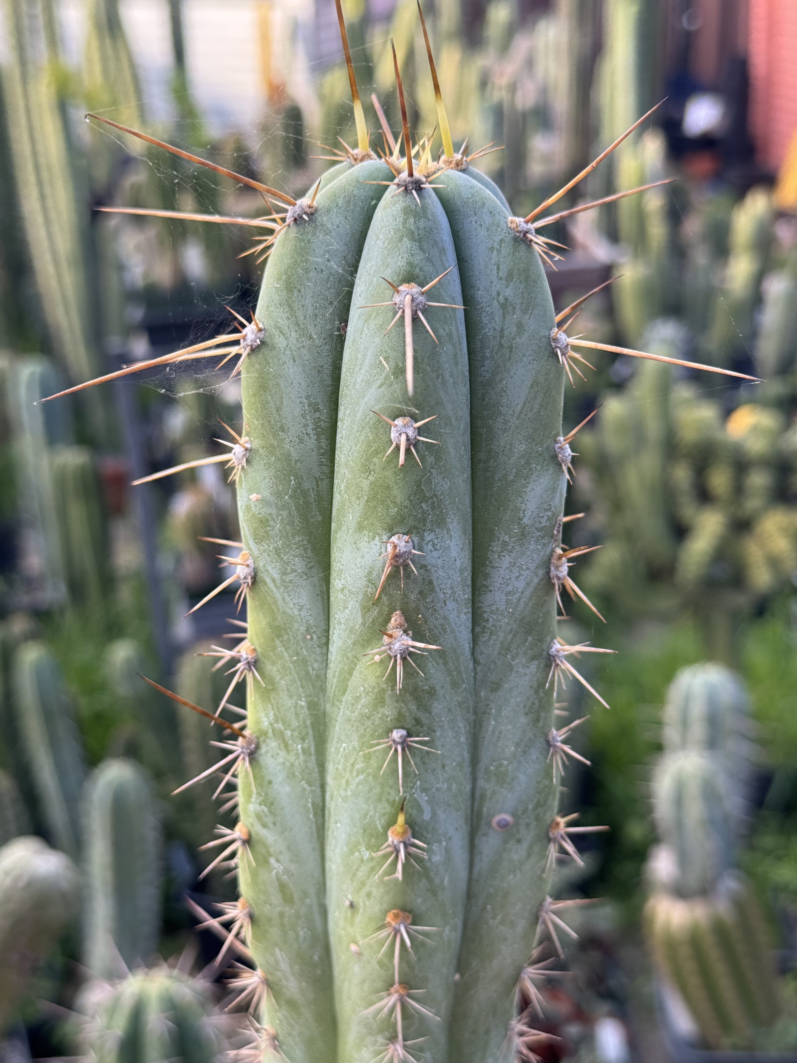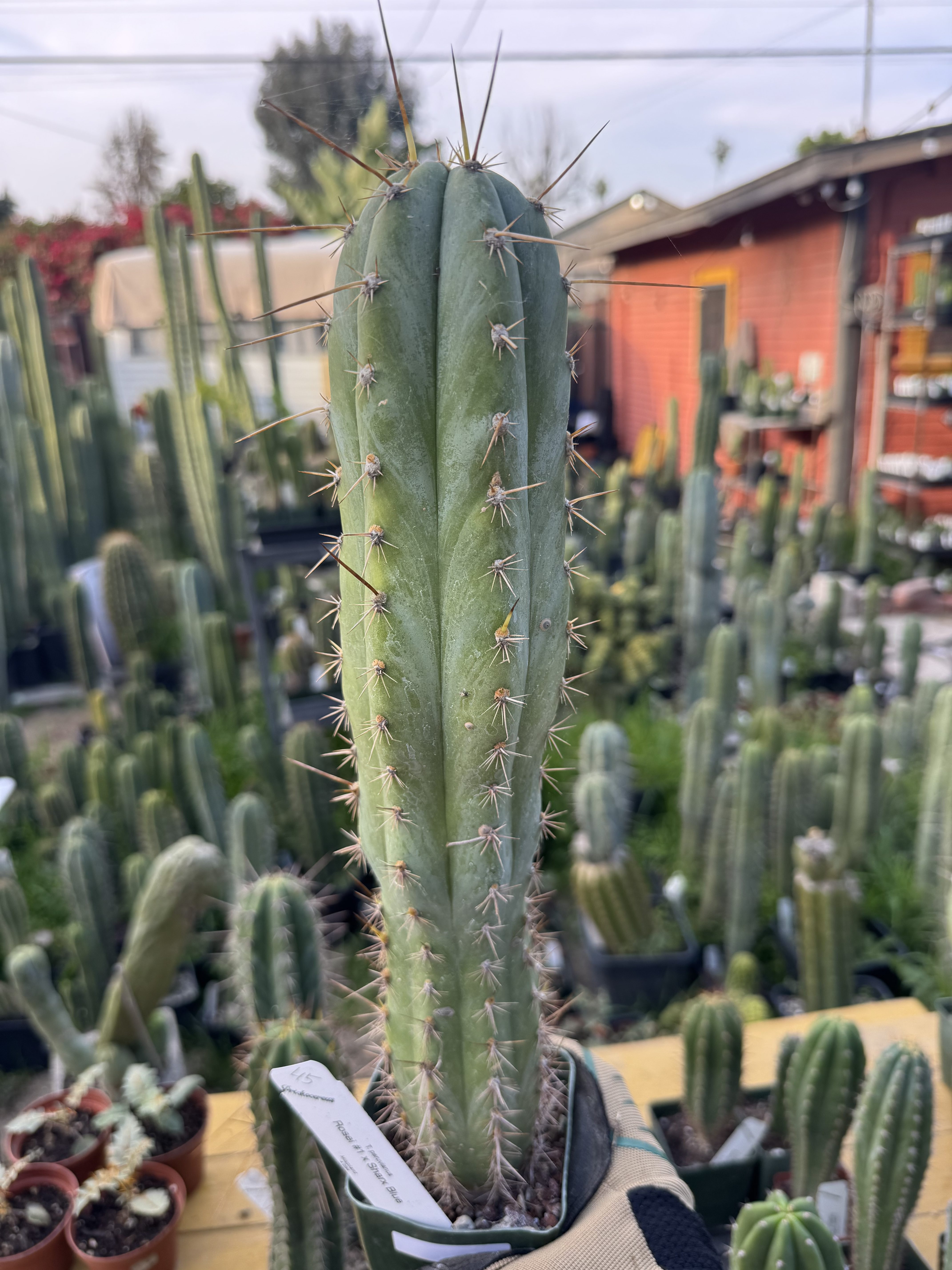Rosei 1 x Sharxx Blue seed grown E. peruvianus.  Very nice Australian genetics produced by Misplant.  Seed sown here in our garden.  These two are some very glaucous blue plants and this one has a superb shape with the rib shifts.