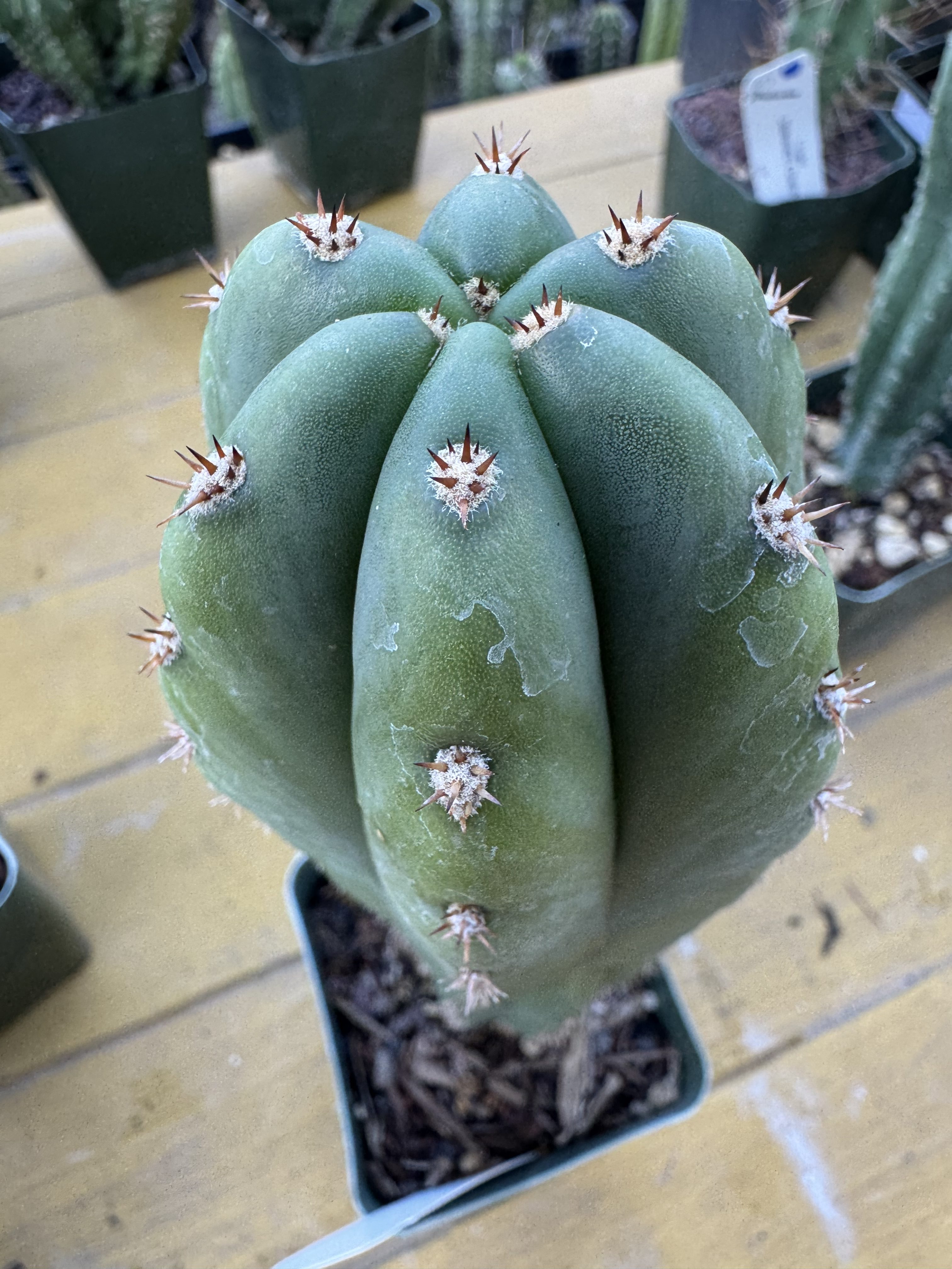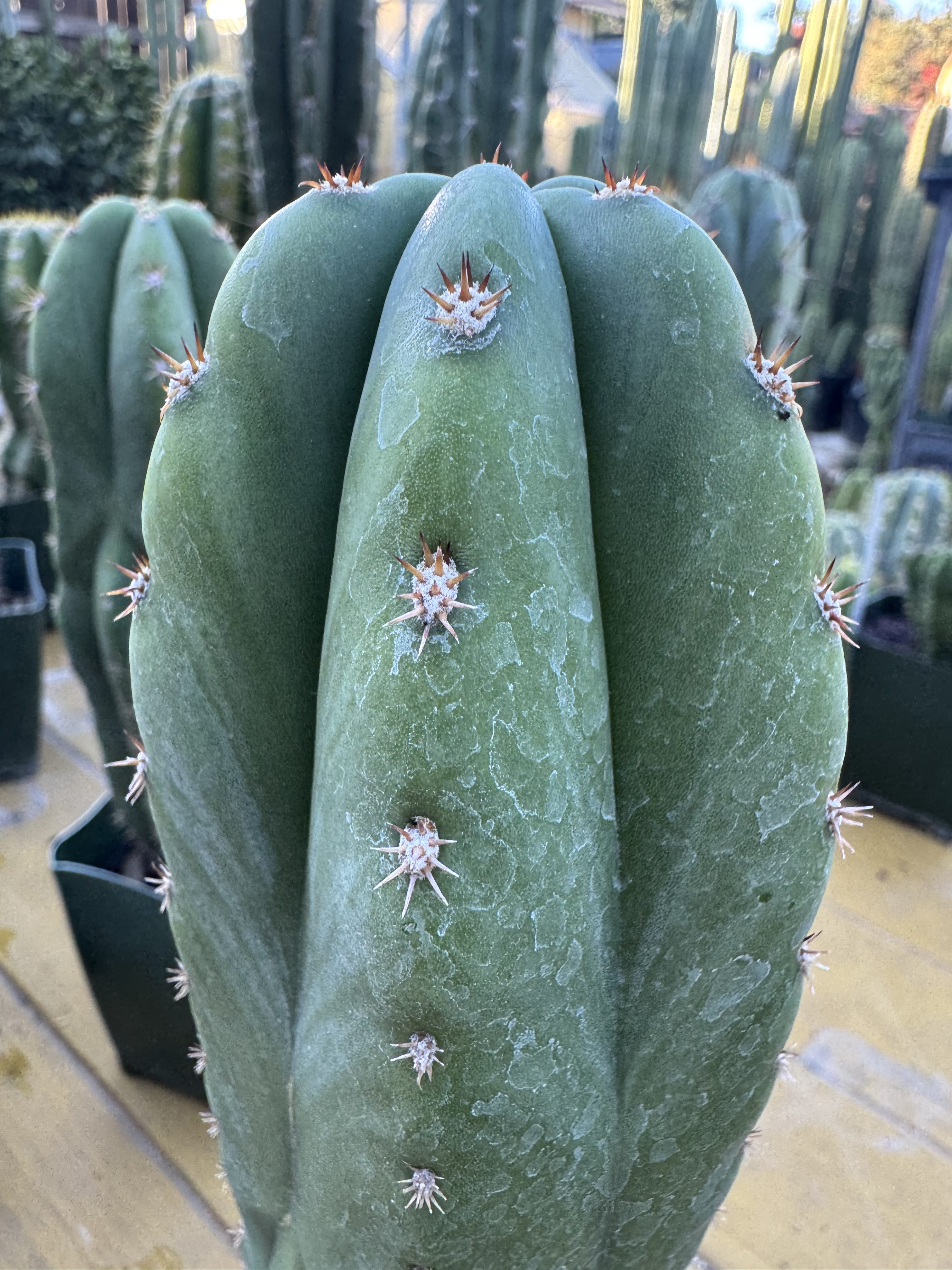 Zed’s x Sharxx Blue seed grown T. scop x peru from some sought after parents.  Such a good phenotype mix to see scop and peru together like this.  The bulbous shape and shifting in ribs seemed to happen to almost every seedling from this batch.   The seeds came from Trichaustralis and were sown by us in our garden.