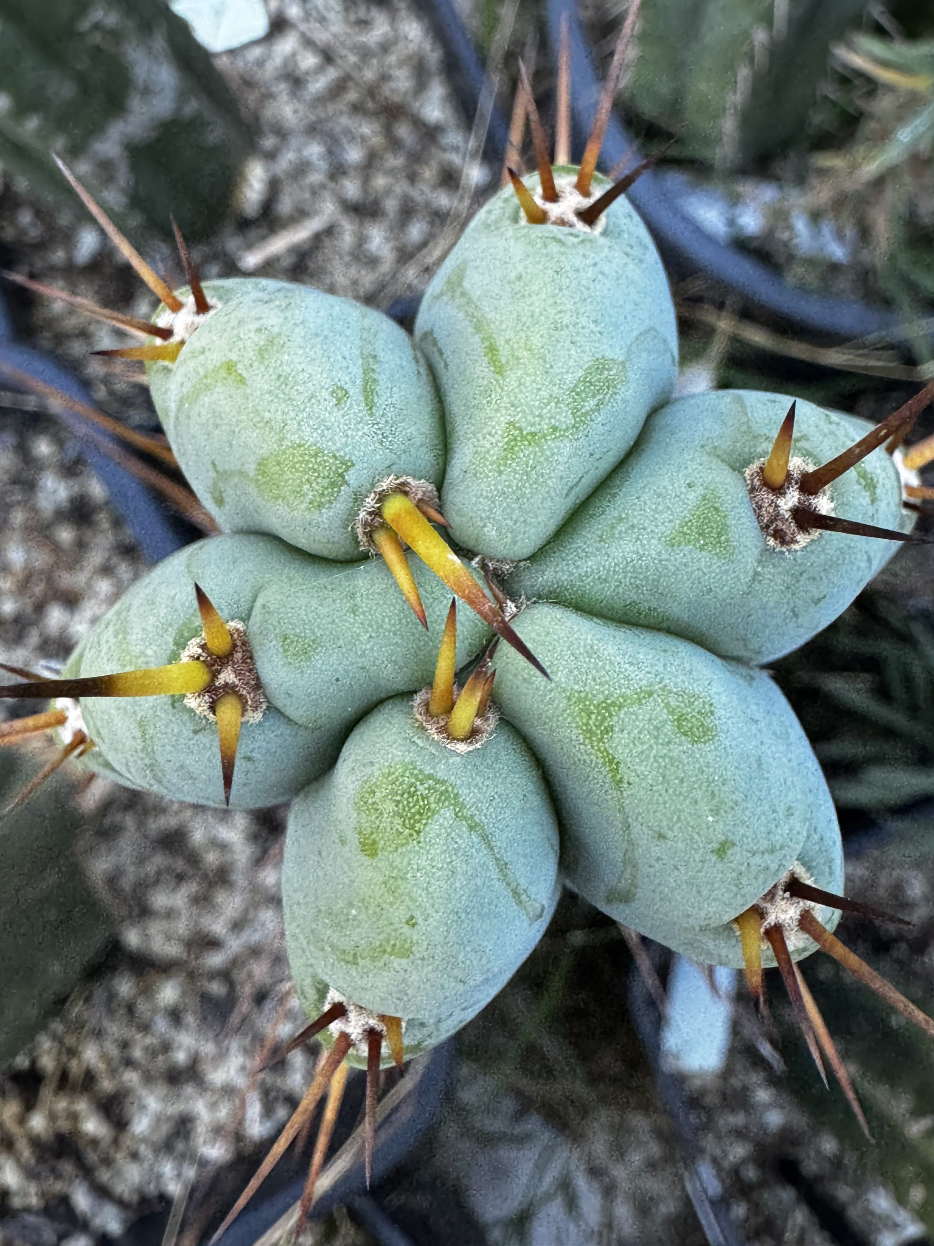 There is something very pretty about this peru x bridge cross. The Sharxx shows off as it should with the very nice blues, but the red spines are so interesting! Ben bridge is known for a single spine look in maturity, but never red spines! Such a good color contrast.