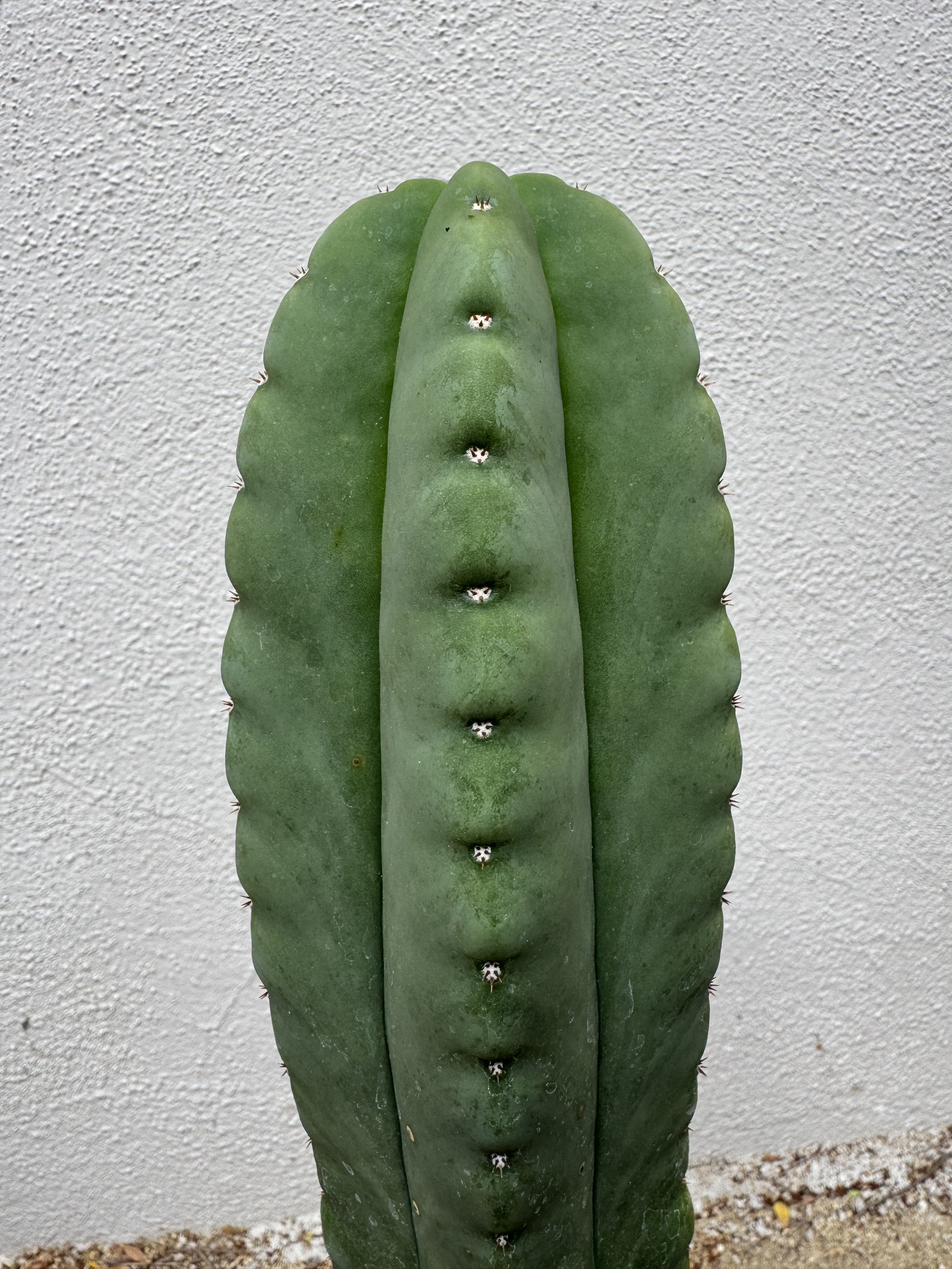 T. scopulicola. For anyone collecting scops, this one may not have a cv. but the shape on the profile and the white indented areoles are superb. It had been propagated by another grower and I had to get it. Zoom in and see what I’m talking about on this specimen. 21 inches tall in an 2.5 gallon 9 inch pot.