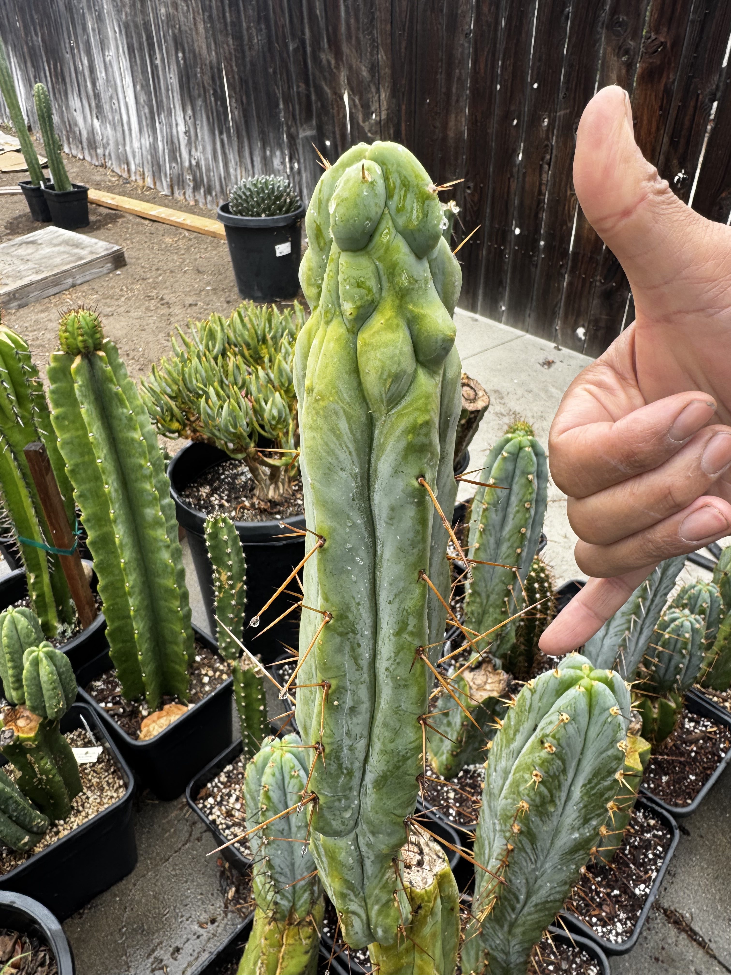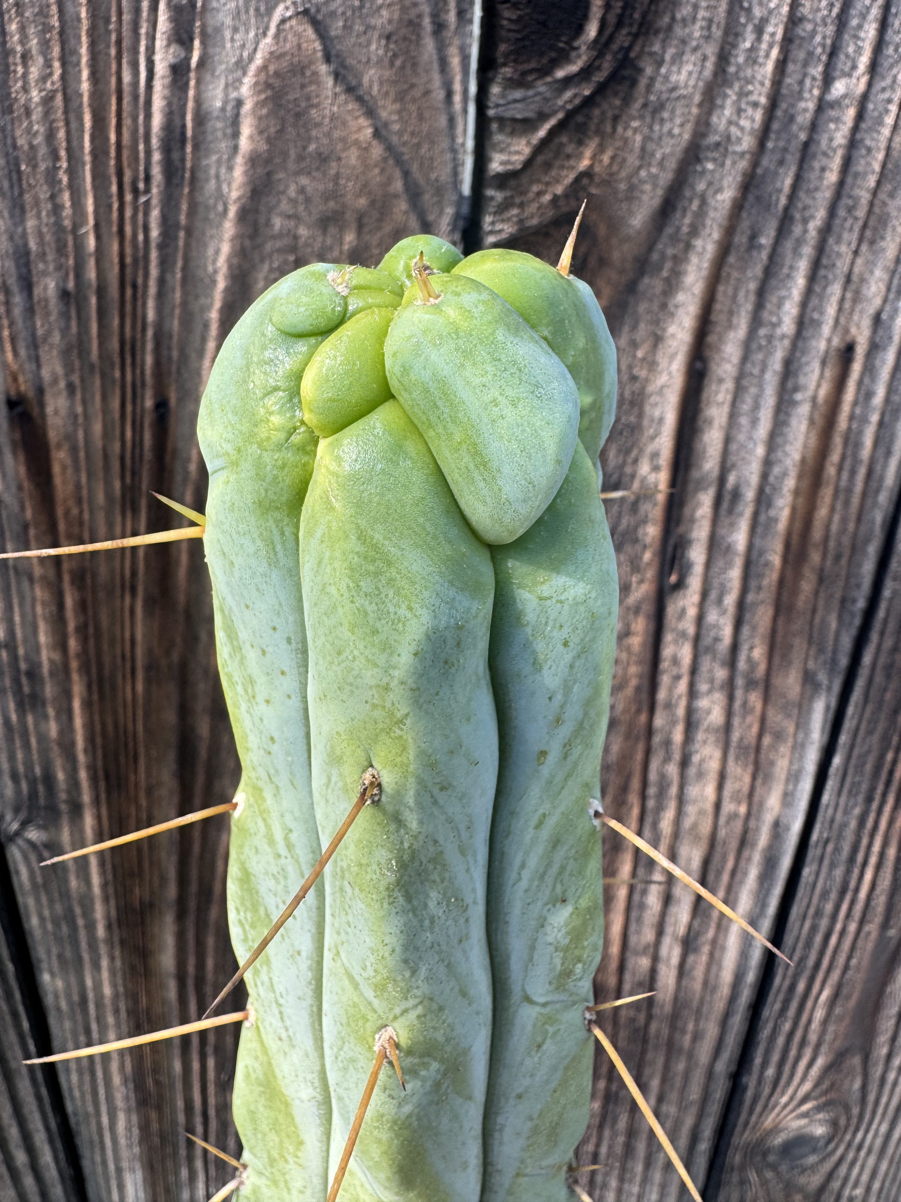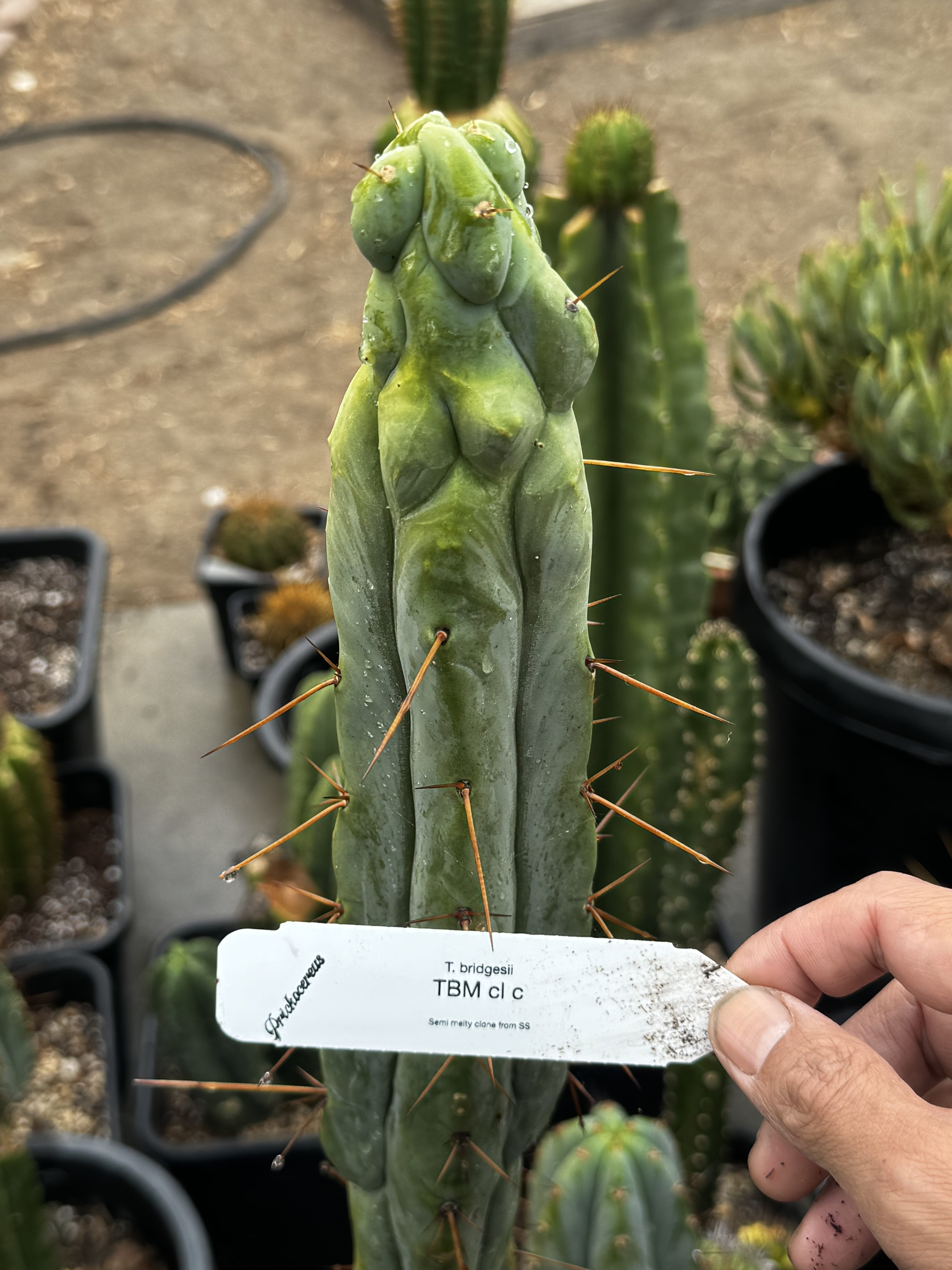 Another Sacred Succulents T. bridgesii clone TBM cl. C . A more melty non uniform that either clone a or b. We call it a melted wax form when it looks like a candle that’s been melting all night.