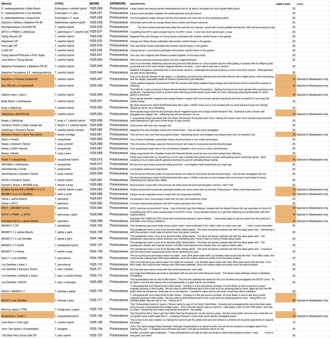 It’s here.  The 10.1025 Seedlist.  This is what will be available.  Some of you may not know, but what is a Masterpack?  It’s the totality of the seed available offered to first adopters.  Byn getting the large variety in the Masterpack, some very limited seed will be available only to the folks who go all in!