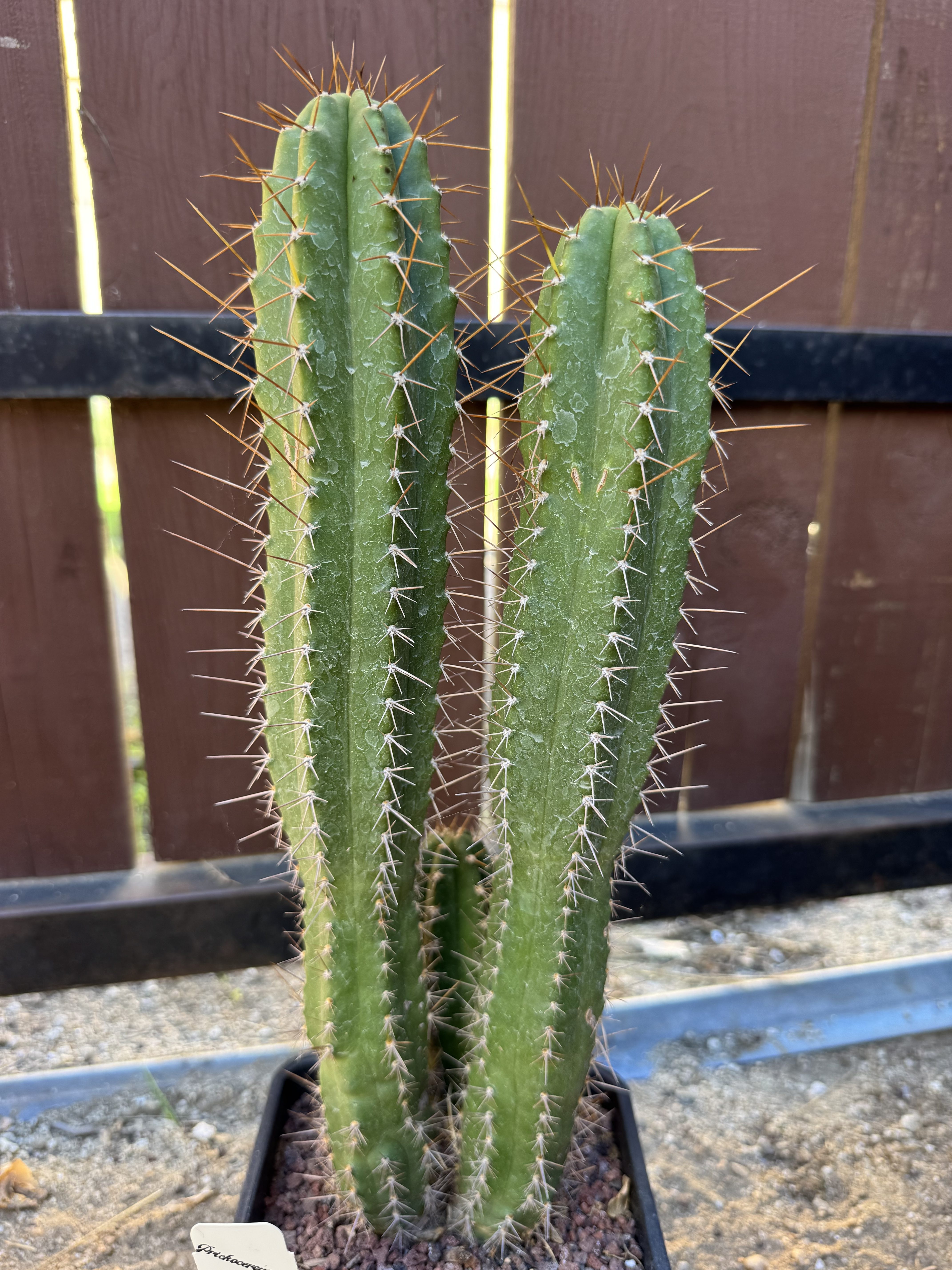 Seed grown hybrid. Val-VRG is a clone from Misplant with wildy spiny columns that produces a pink flower. It got hybridized with Oscar to shorten some of the spination but it also added a bit of that TPM type growth to the plant. Theres a chance this very nice column will produce a colorful flower. I like how verdant green these columns have been with the yellow spines.