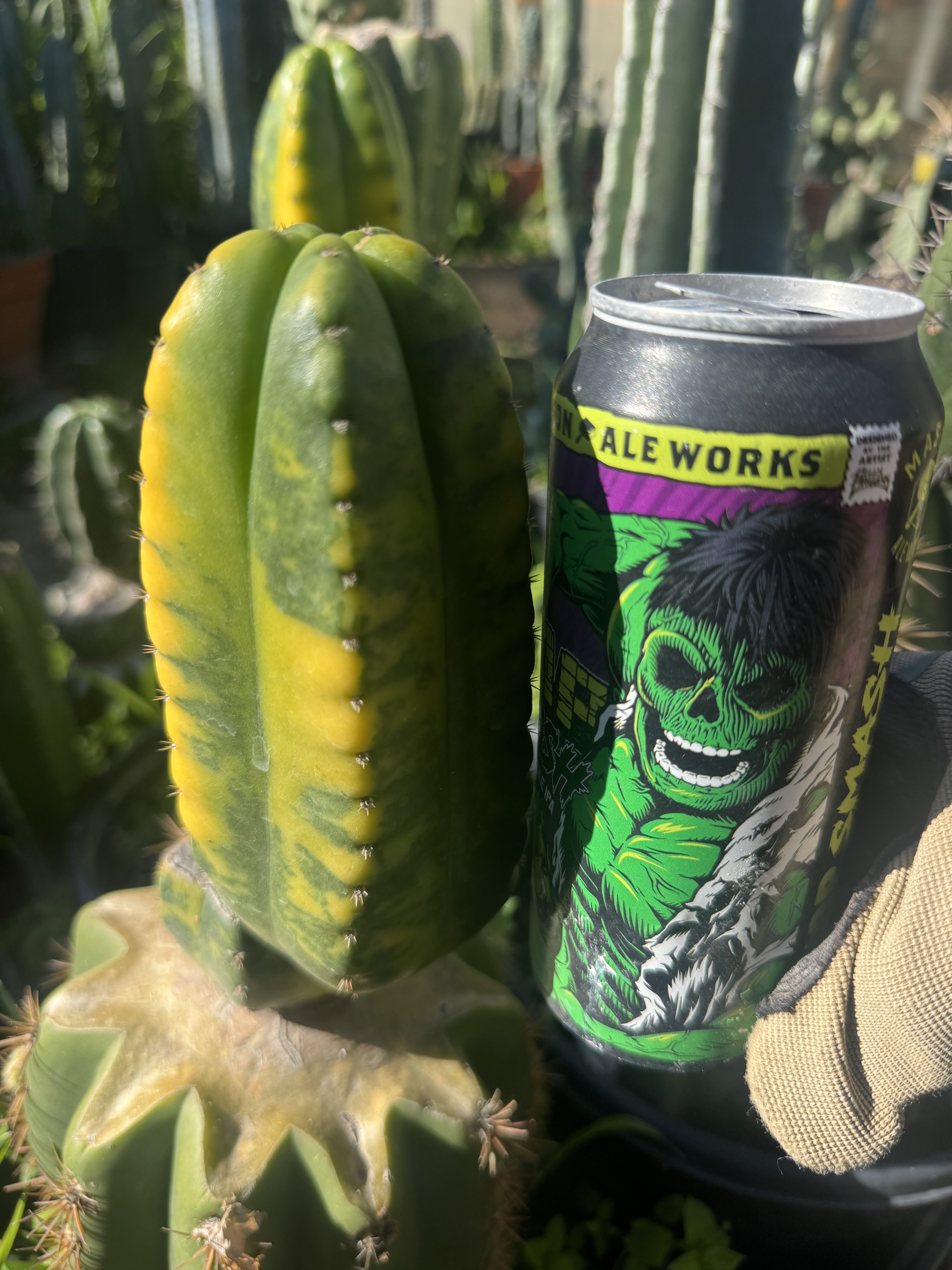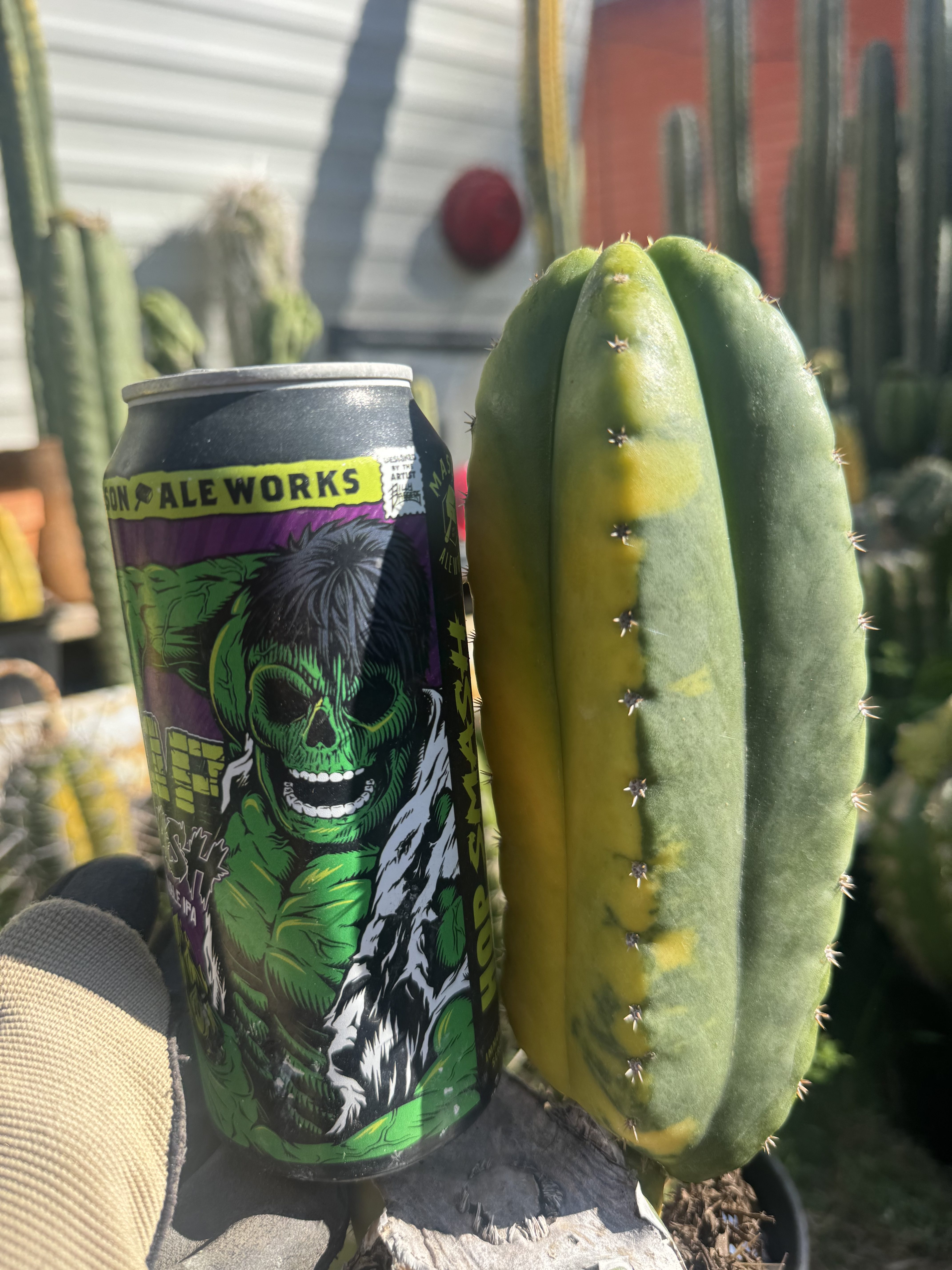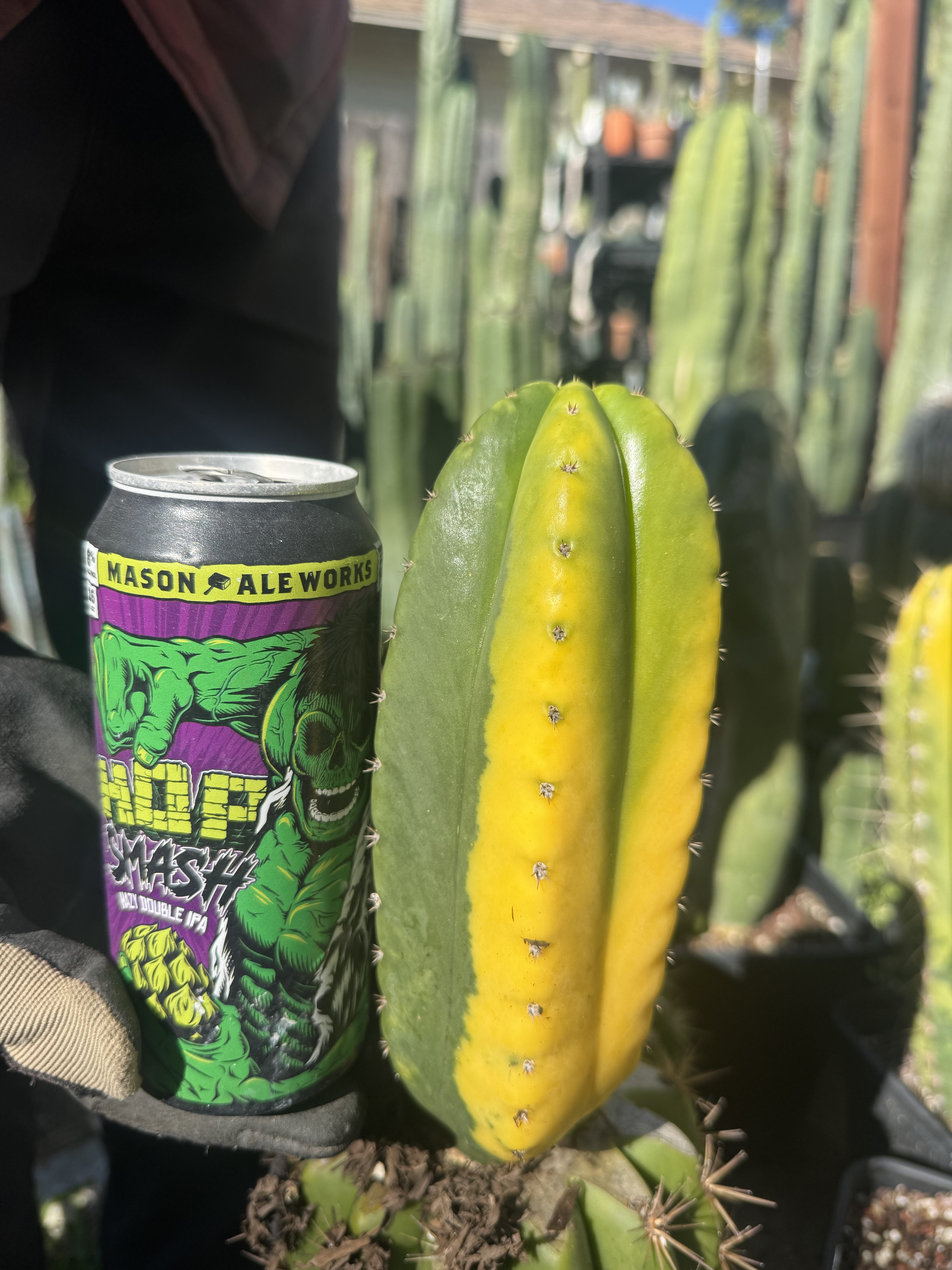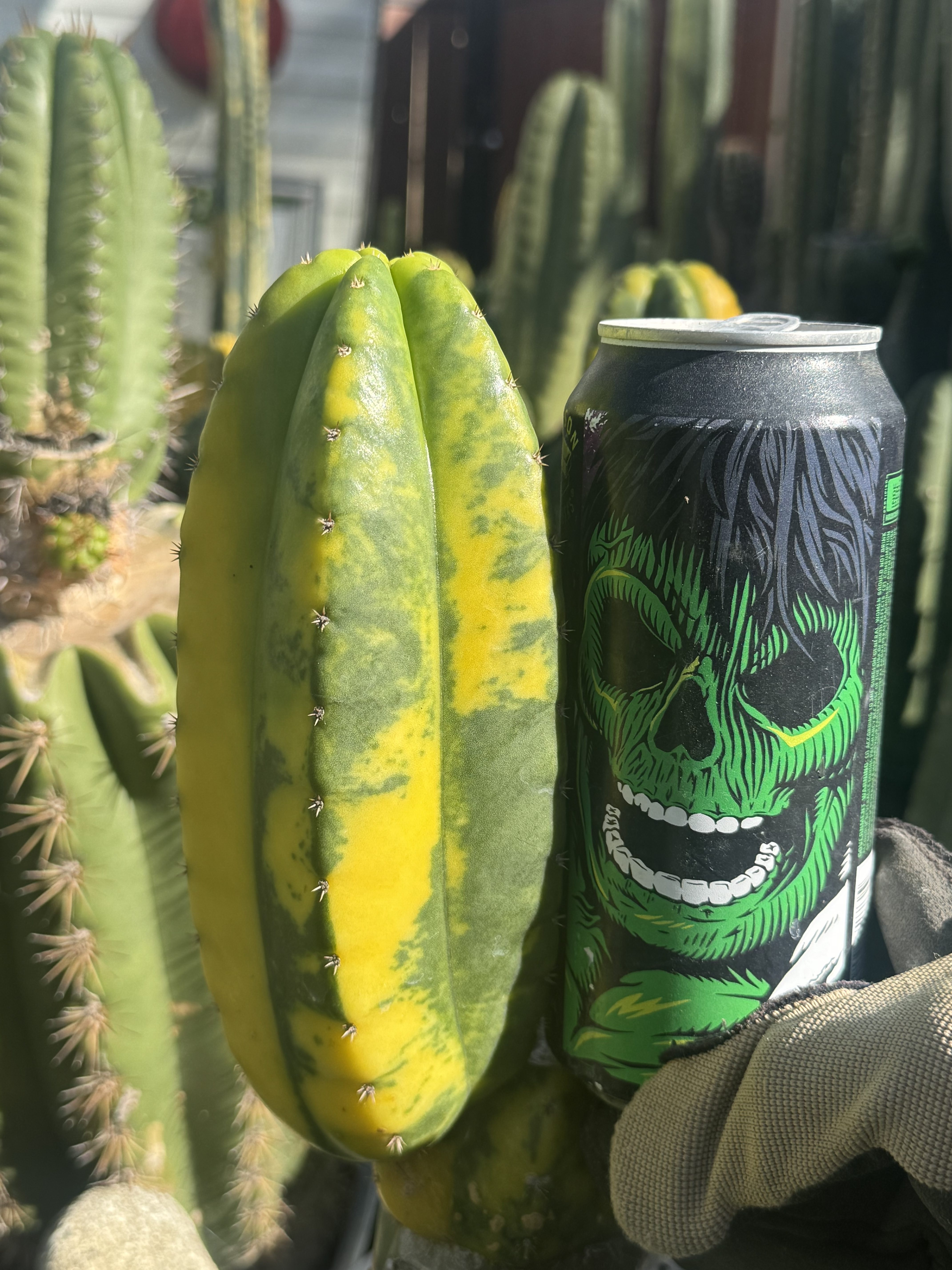 A seed grown scopulicola hybrid discovered here in the Prickocereus garden. MasterB x TPM genetics sown by us. The smooth ribs short spines and almost gleaming epidermis make this a very unique variegated planE. Develops a very nice notch above the areoles. The pattern is gorgeous and will root well like the others. Still very few in cultivation as I’ve only released a few and I can barely keep it in stock.
