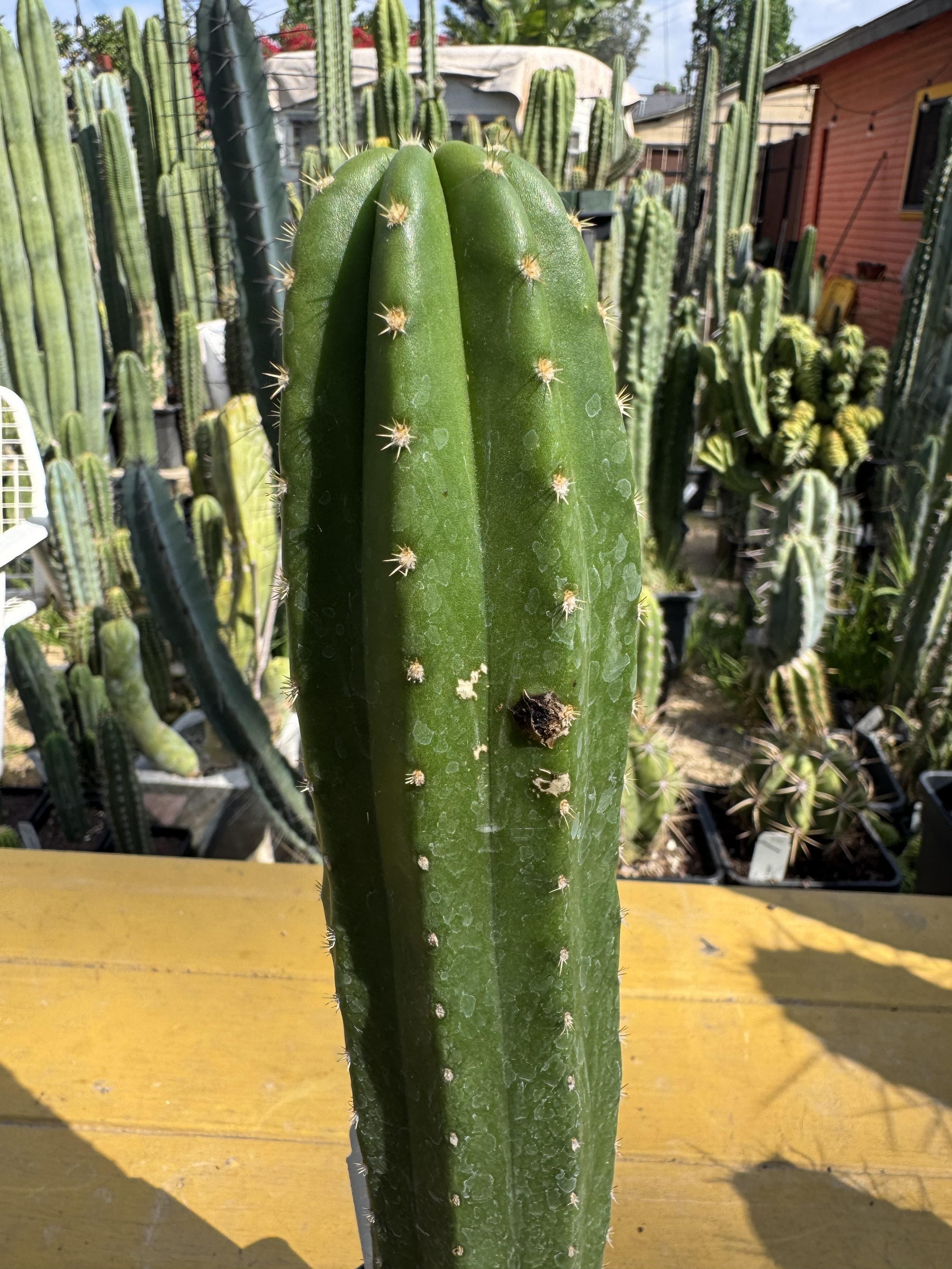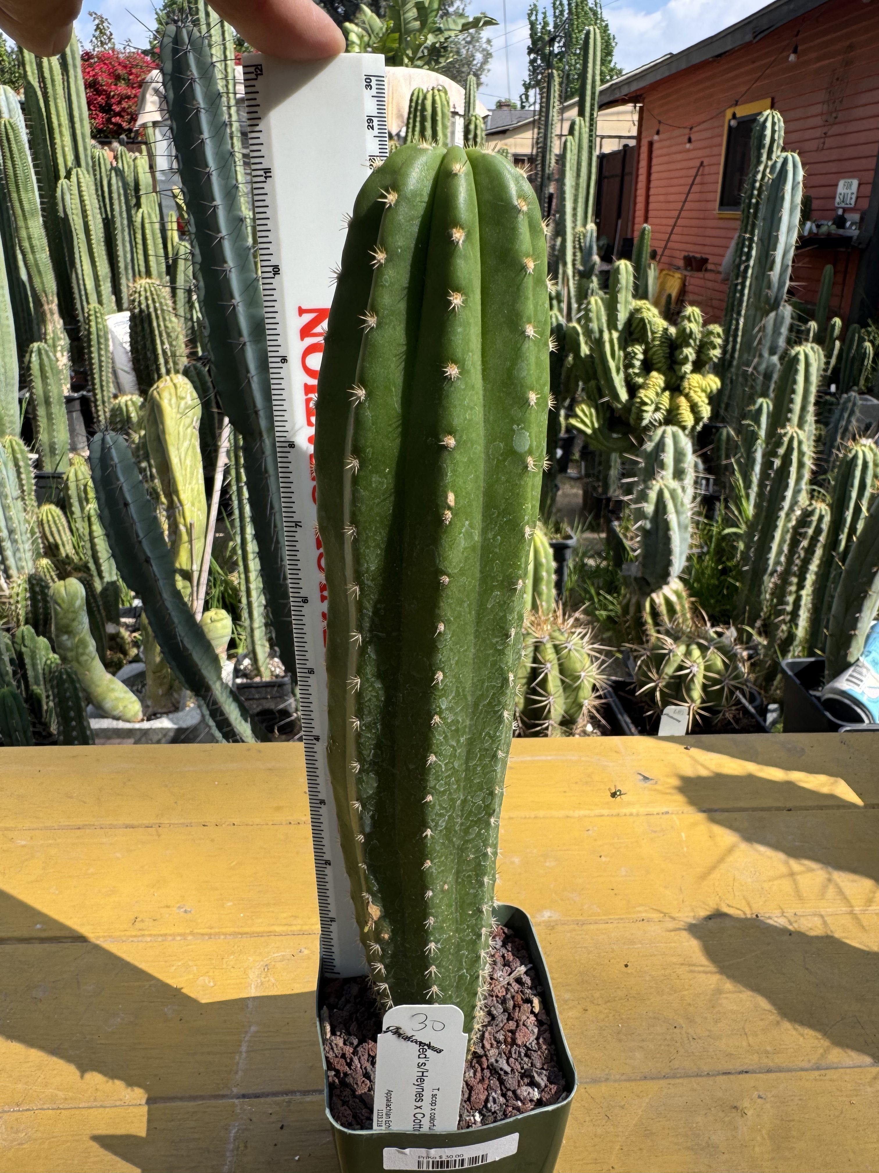 11″ in 3 ¼ pot. Fast growing, this one I feel like just needs another year or two in a 1 gallon pot to get to seee what flower we have. Wound is callousing over from being poked from our last trip.